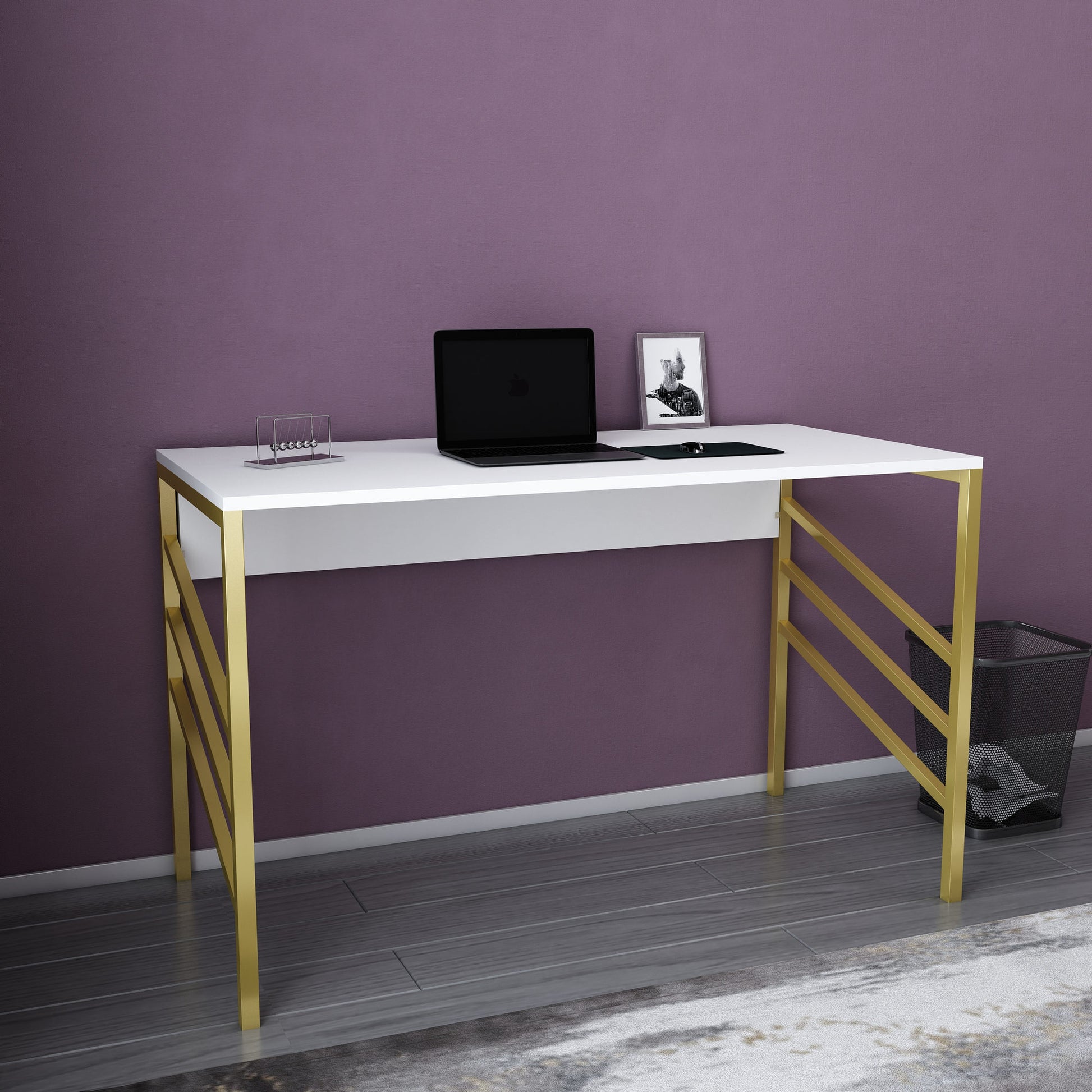 Secretária de Estudo/Escritório Moderna, Dourada e Branca, 120 x 60 x 74,8 cm | Painel de Partículas 100% Revestido em Melamina, 18 mm de Espessura | Design Glamouroso para Casa e Escritório