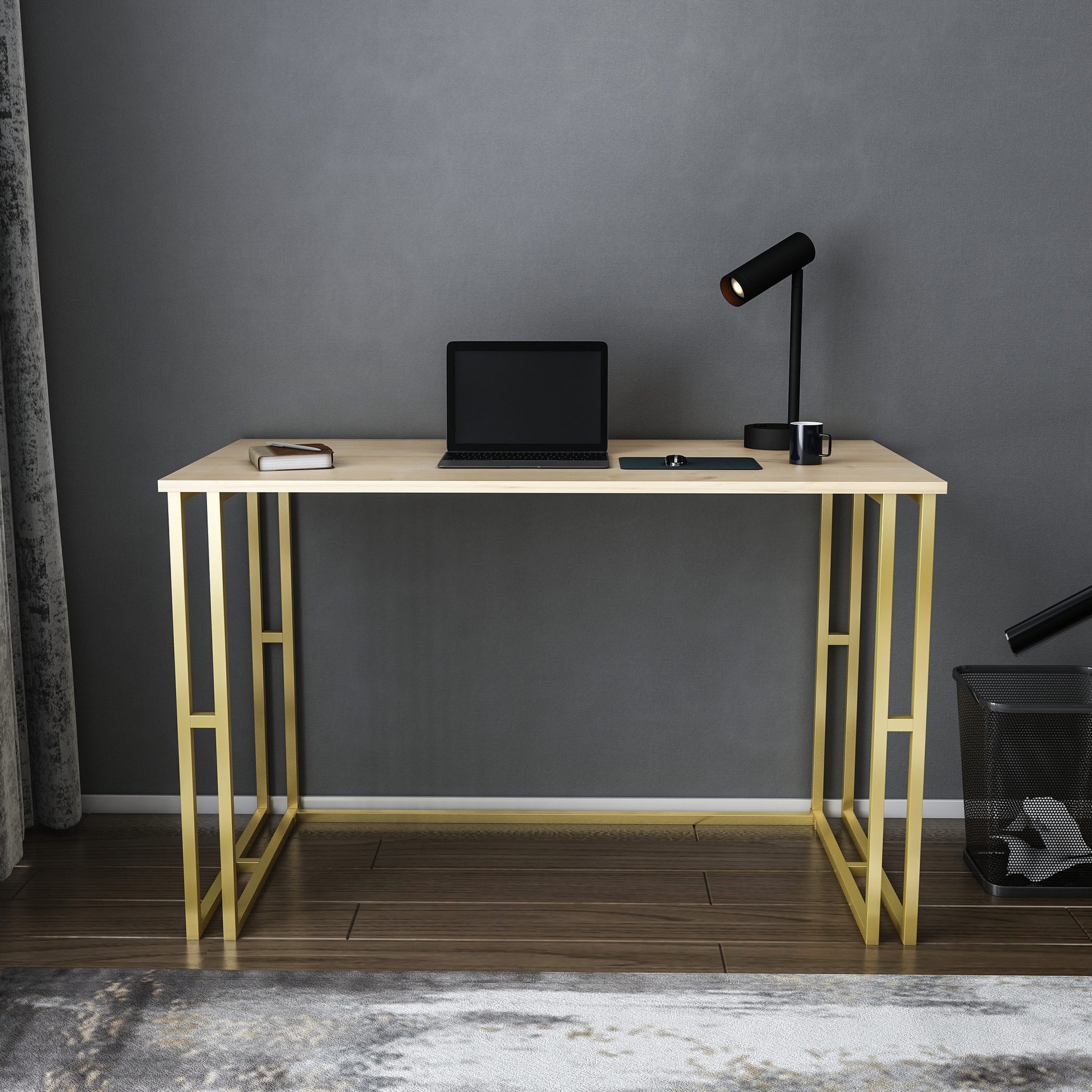 Secretária de Estudo/Escritório Moderna, Dourado e Carvalho, 120 x 60 x 74,8 cm | Painel de Partículas 100% Revestido em Melamina, 18 mm de Espessura | Design Glamouroso para Casa e Escritório