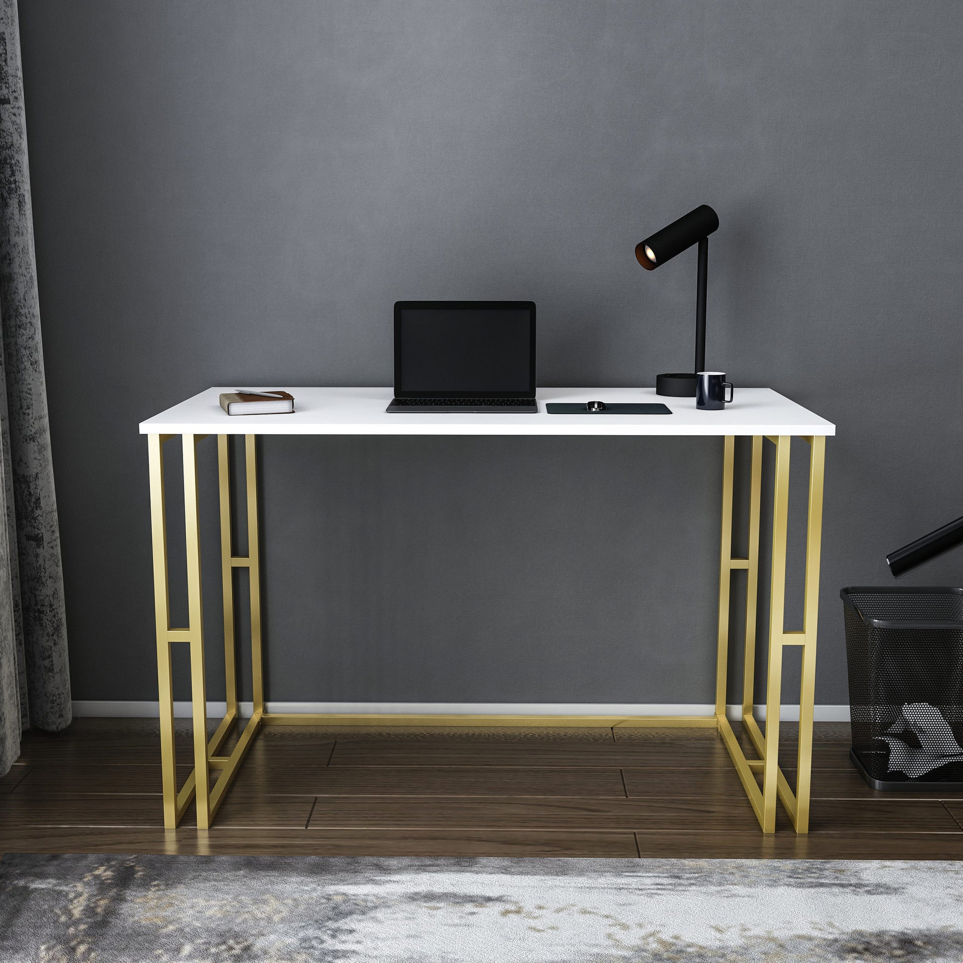Secretária de Estudo/Escritório Moderna, Dourada e Branca, 120 x 60 x 74,8 cm | Painel de Partículas 100% Revestido em Melamina, 18 mm de Espessura | Design Glamouroso para Casa e Escritório