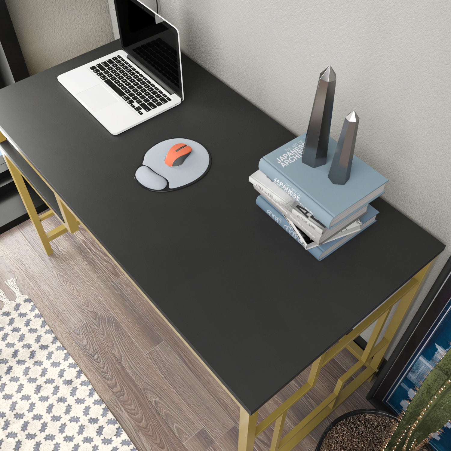 Secretária de Estudo/Escritório Moderna, Dourado e Antracite, 120 x 60 x 74,8 cm | Painel de Partículas 100% Revestido em Melamina, 18 mm de Espessura | Design Glamouroso para Casa e Escritório