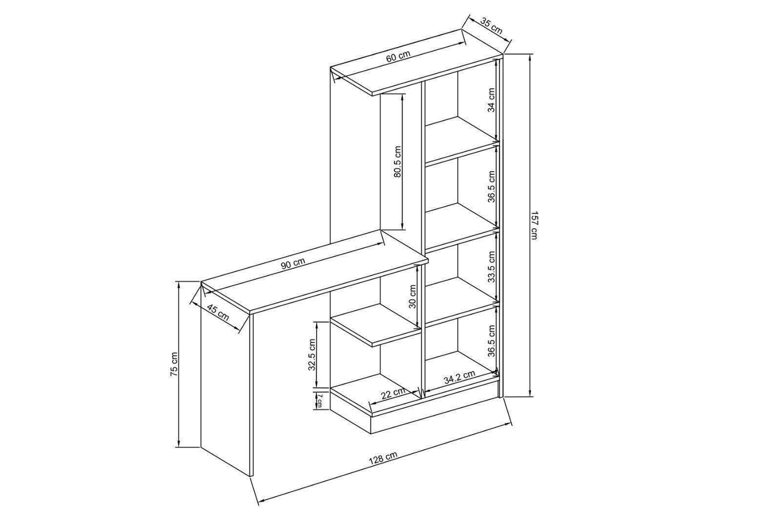 Estante em MDF revestido de melamina – 75 cm L x 168,3 cm A x 26,8 cm P – Pinheiro Atlântico e Branco
