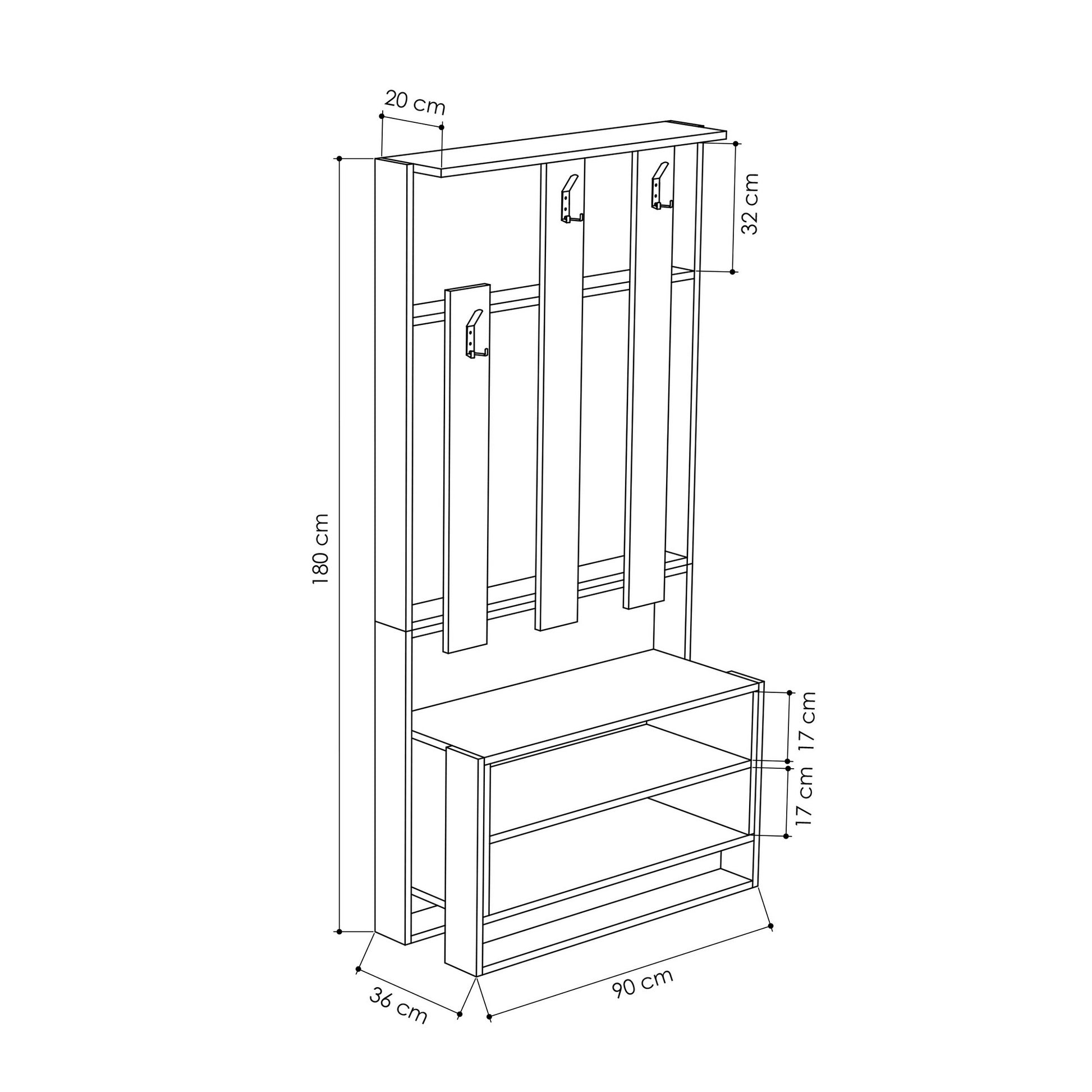 Com uma largura generosa de 90 cm e uma altura de 180 cm, a nossa estante de hall oferece muito espaço de arrumação para manter os seus pertences organizados. As numerosas prateleiras proporcionam um local perfeito para expor os seus artigos de decoração favoritos, enquanto a altura de 17 cm das prateleiras permite um acesso fácil aos seus objectos essenciais.
