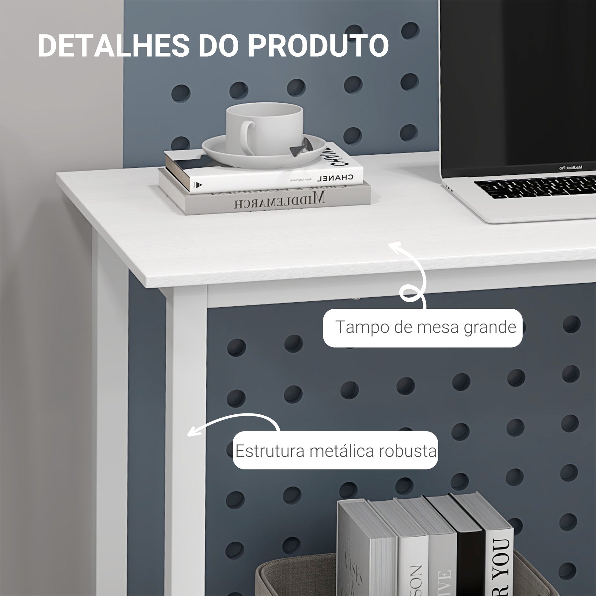 - Benefícios: Ampla bancada para laptop, documentos e impressora, pés ajustáveis para estabilidade, capacidade de carga de até 100 kg.