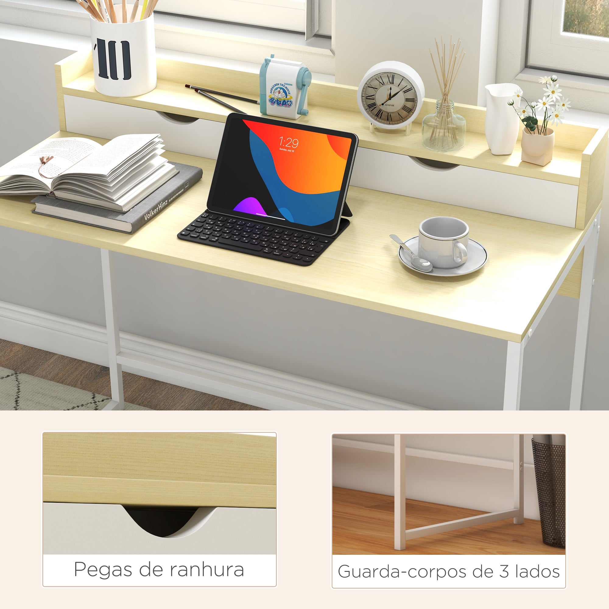 Secretária Moderna com Estante e Gavetas Removíveis 106x50x89 cm - Branco e Carvalho