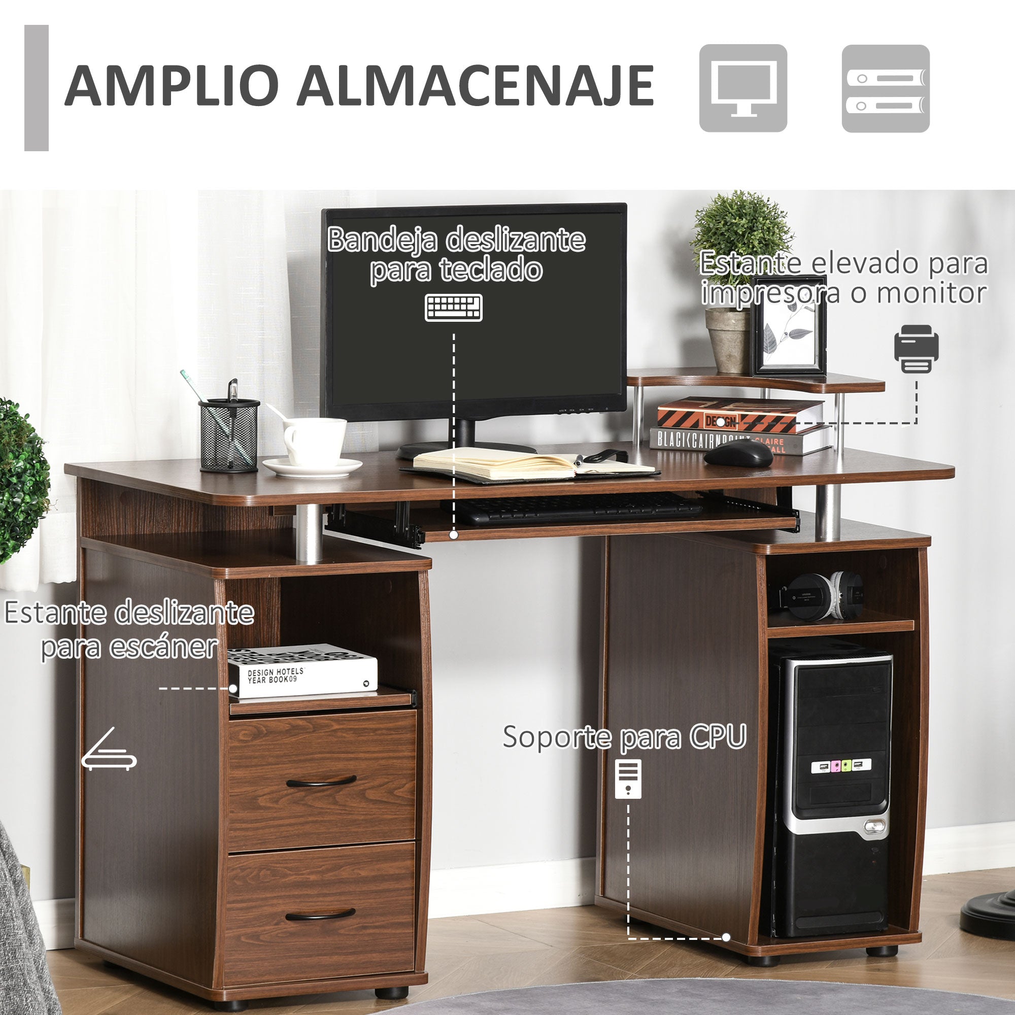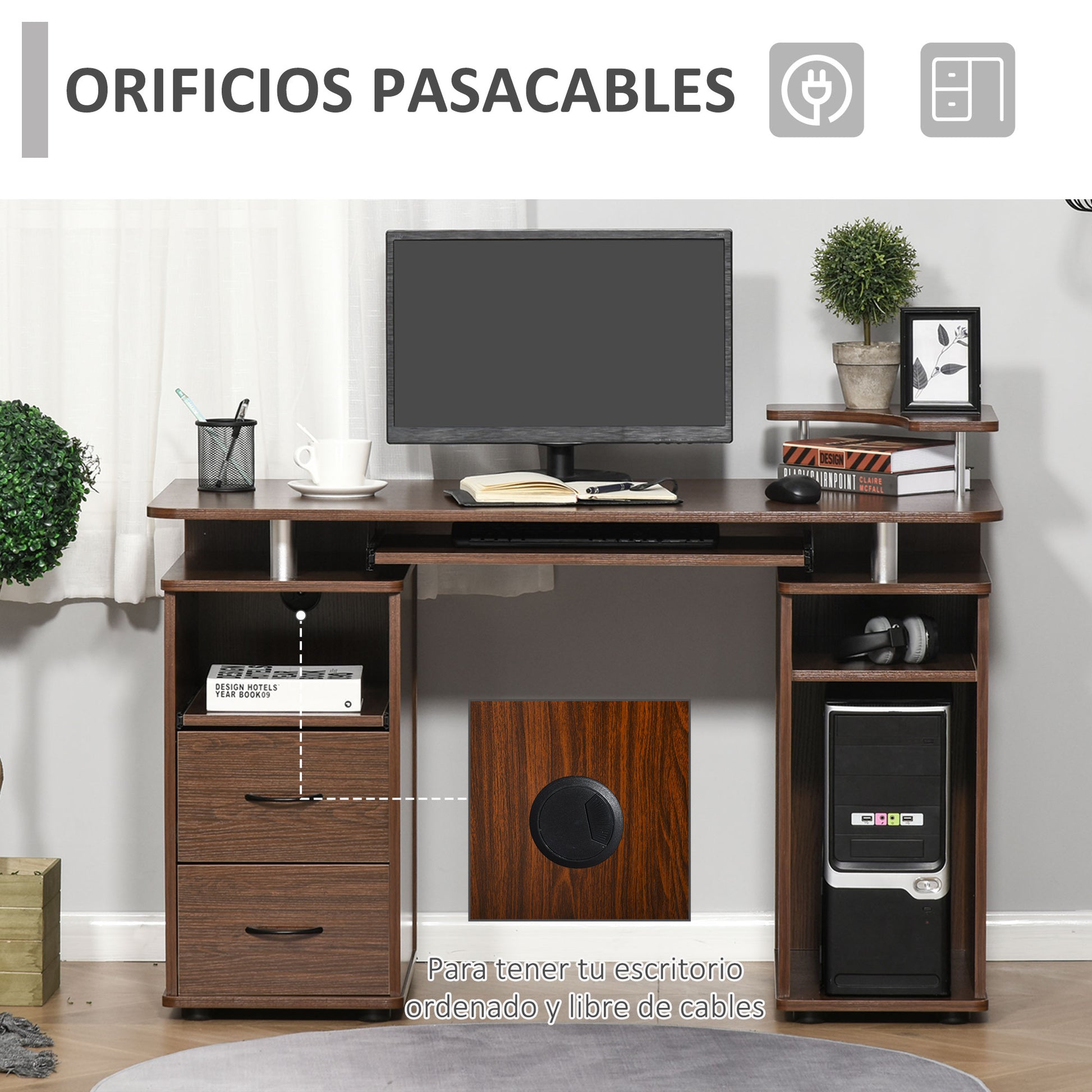 Secretária para Computador com Prateleiras e 2 Gavetas - Noz 120x55x85 cm