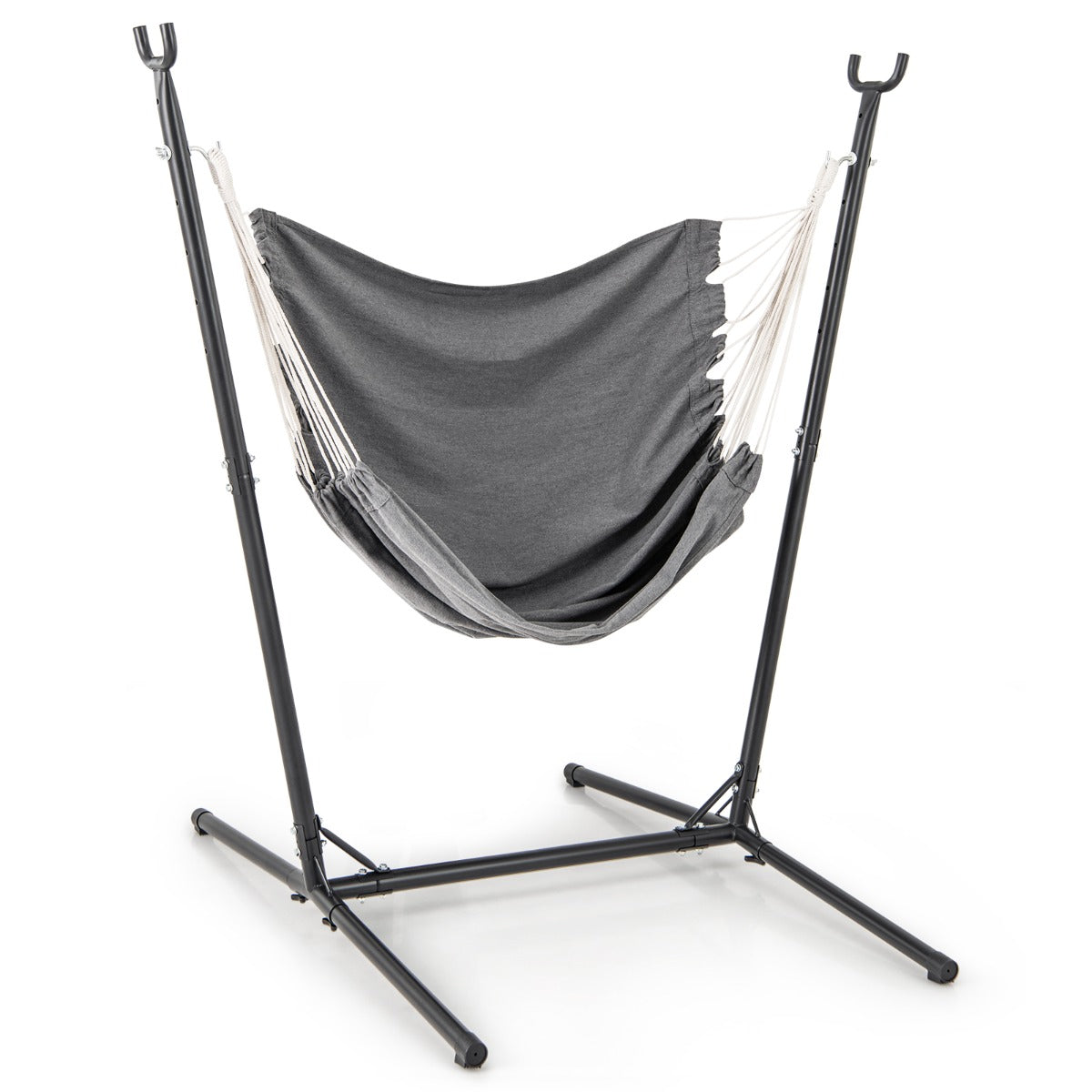 - Construção Resistente e Robusta: Construída com uma estrutura de metal resistente e uma base em forma de H, a silla suspensa garante estabilidade e uso duradouro. Enquanto isso, a estrutura triangular estável e a conexão firme fornecem reforço e promovem a durabilidade.
