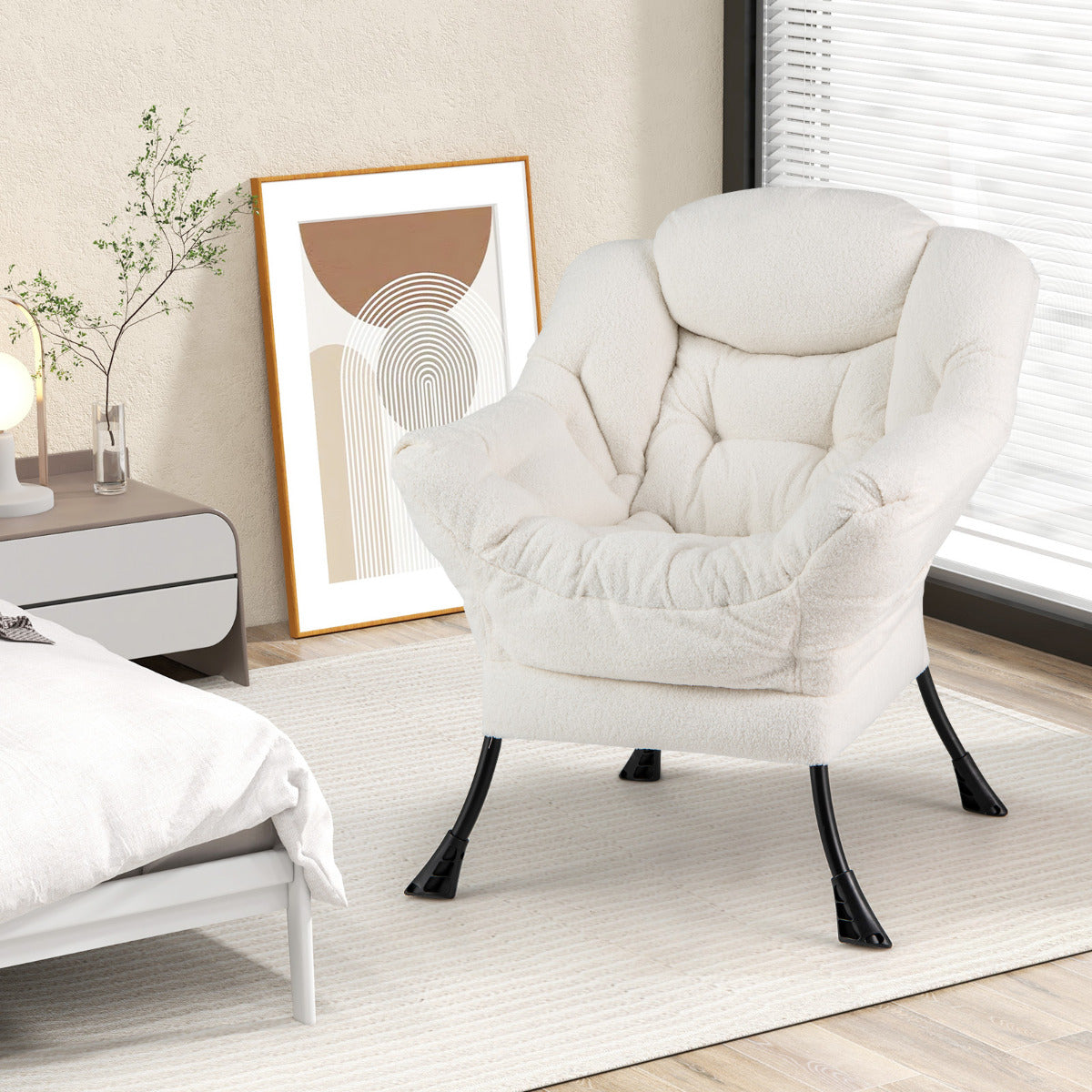 Crie um cantinho acolhedor para ler, brincar ou relaxar com o nosso sofá poltrona! Com encosto sobreacolchoado, assento espaçoso e dois apoios de braços para um conforto ergonómico, este sofá poltrona proporciona uma experiência de assento acolhedora com a sua estofagem em sherpa suave. A almofada de cabeça adicional garante conforto extra, e o bolso lateral mantém os seus artigos ao alcance. Com estrutura de metal resistente e almofadas antiderrapantes, este sofá poltrona melhora a robustez e estabilidade. A capa pode ser removida facilmente para manutenção, graças ao fecho de correr e aos velcros.