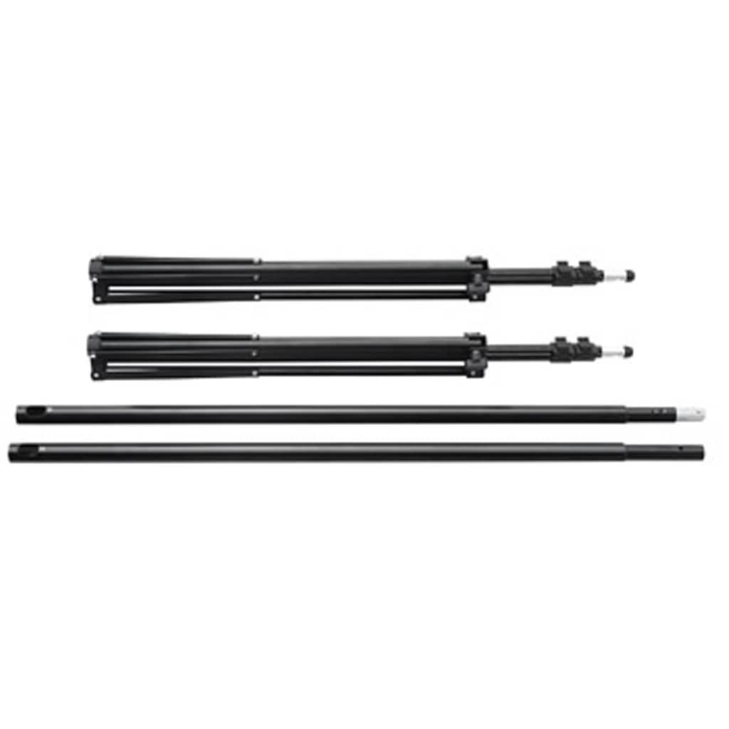 Com este sistema porta-fundos completo, pode fazer o que a sua imaginação quiser como fotógrafo, utilizando-o no estúdio ou no local. O sistema leve é fácil e rapidamente montado e é feito de alumínio. Um fundo de algodão verde está incluído neste sistema, dando-lhe a opção de usar o chroma-key. O sistema também pode ser utilizado em combinação com outros fundos e/ou rolos de papel.