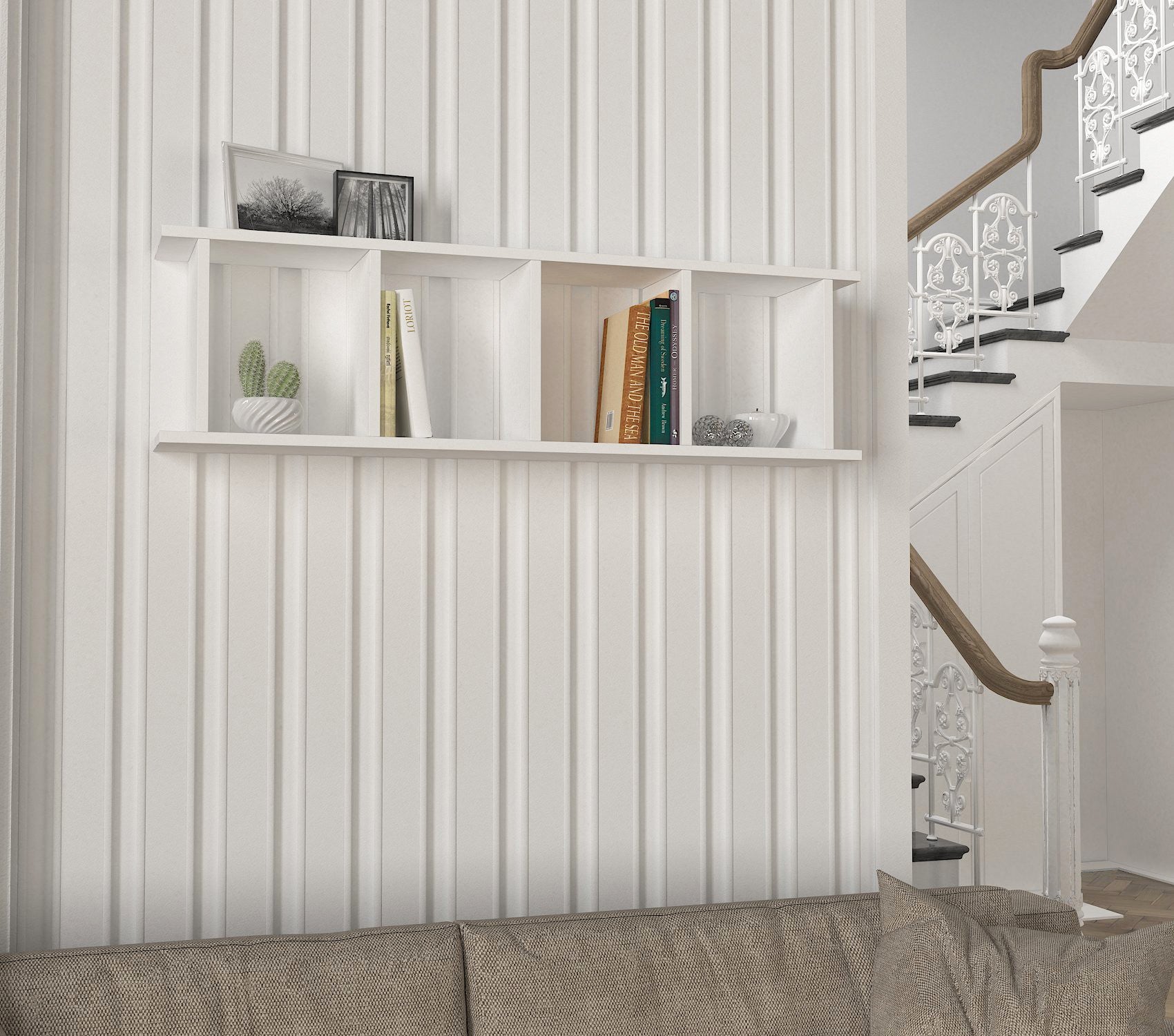 Estante de parede escandinava – 120 x 33,6 x 19,5 cm – Branca – Painel de partículas revestido a melamina