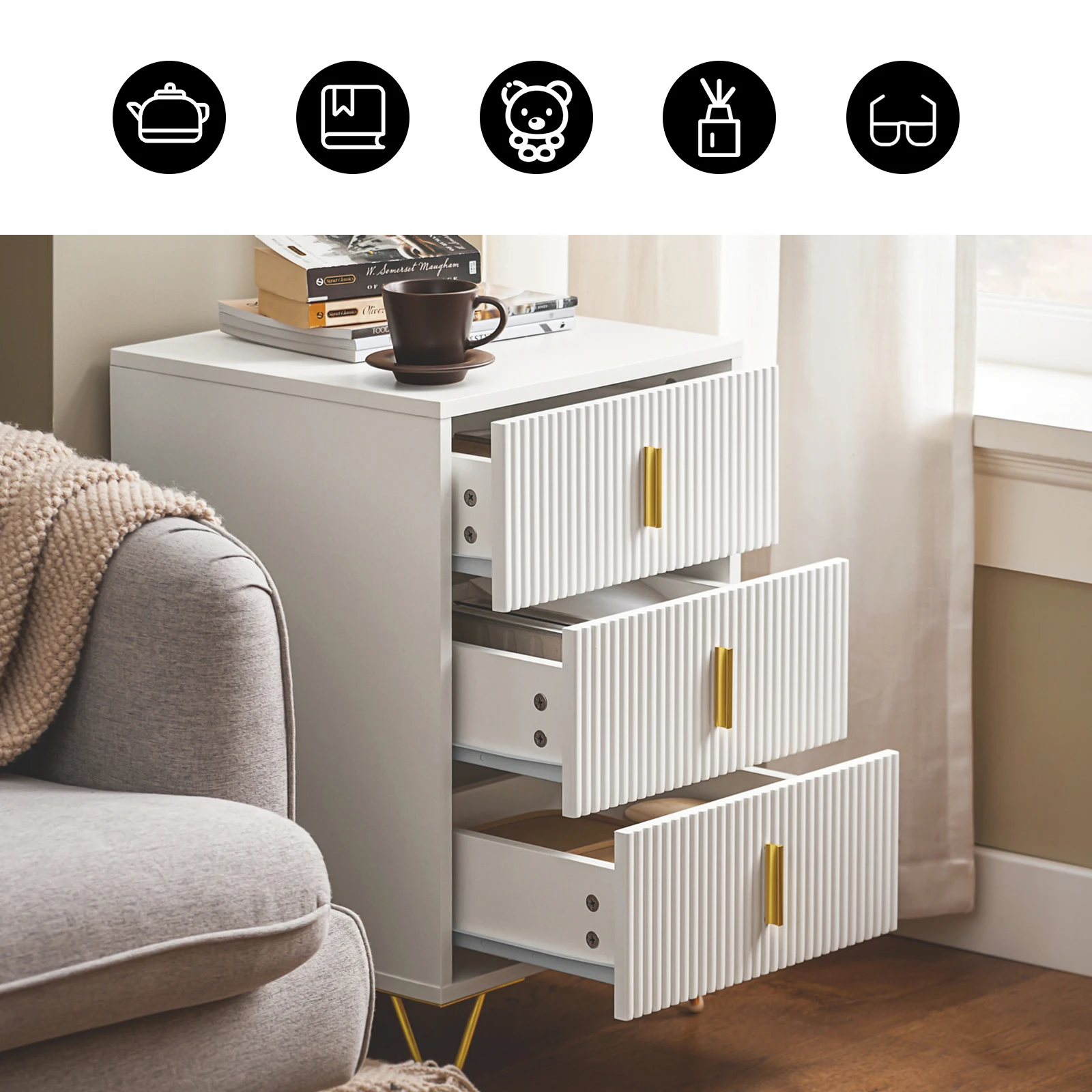 Mesa de Cabeceira Aura - com 3 Gavetas – Branco – 40x63x40 cm