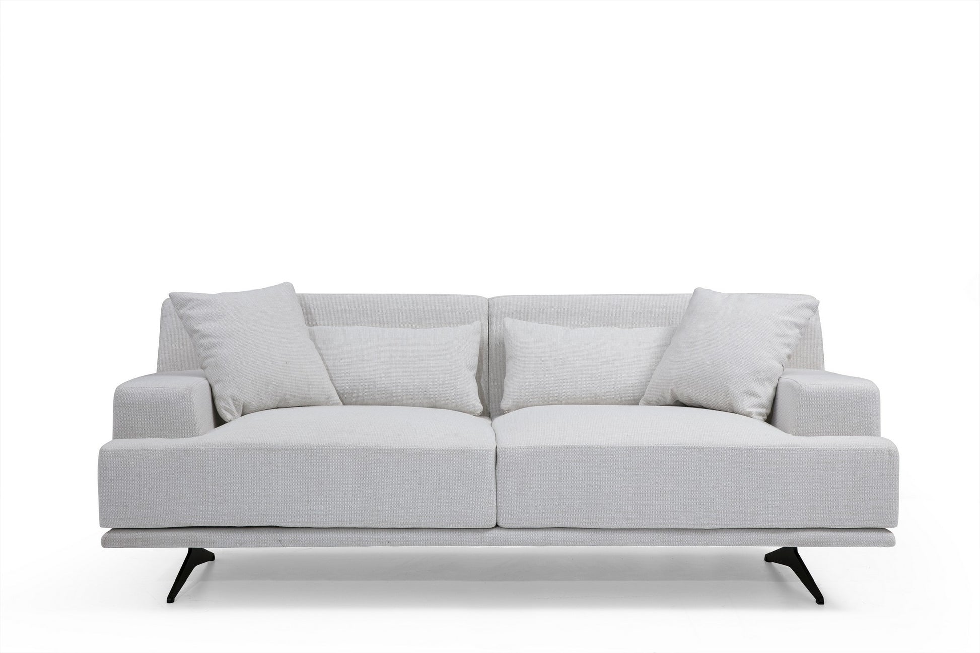 Sofá elegante de 2 lugares, bege, 200 x 110 x 80 cm | Estrutura em madeira de faia, 100% poliéster, espuma cinza macia | Design moderno com pernas de metal preto fosco, perfeito para casa e escritório