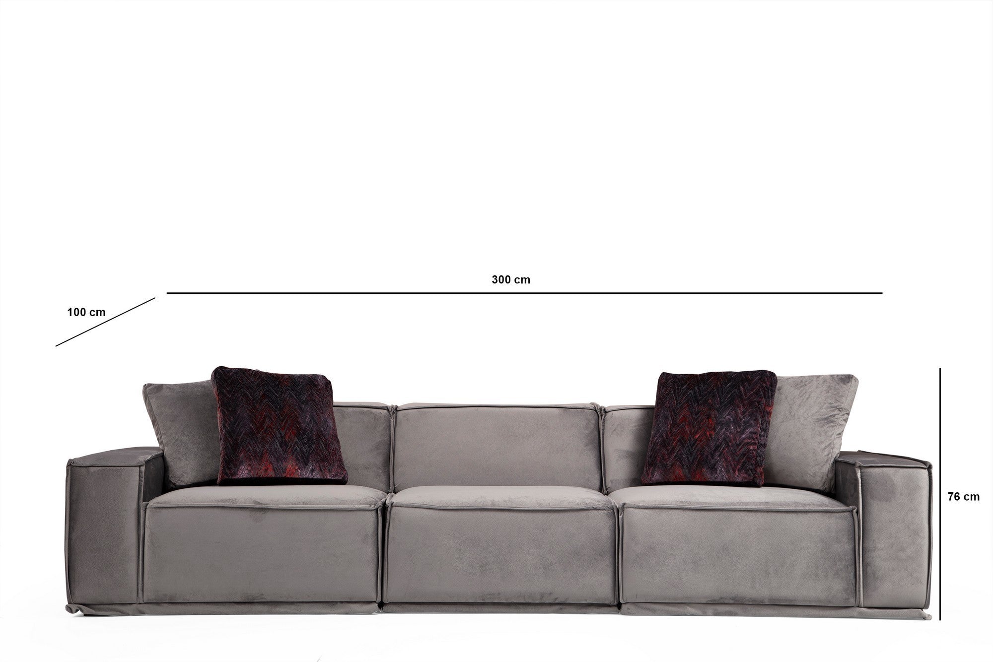 Sofá elegante de 3 lugares, cinza, 300 x 100 x 76 cm | Estrutura de madeira de faia, 100% poliéster, espuma macia, inclui 2 almofadas | Design escandinavo moderno para residências e hotéis