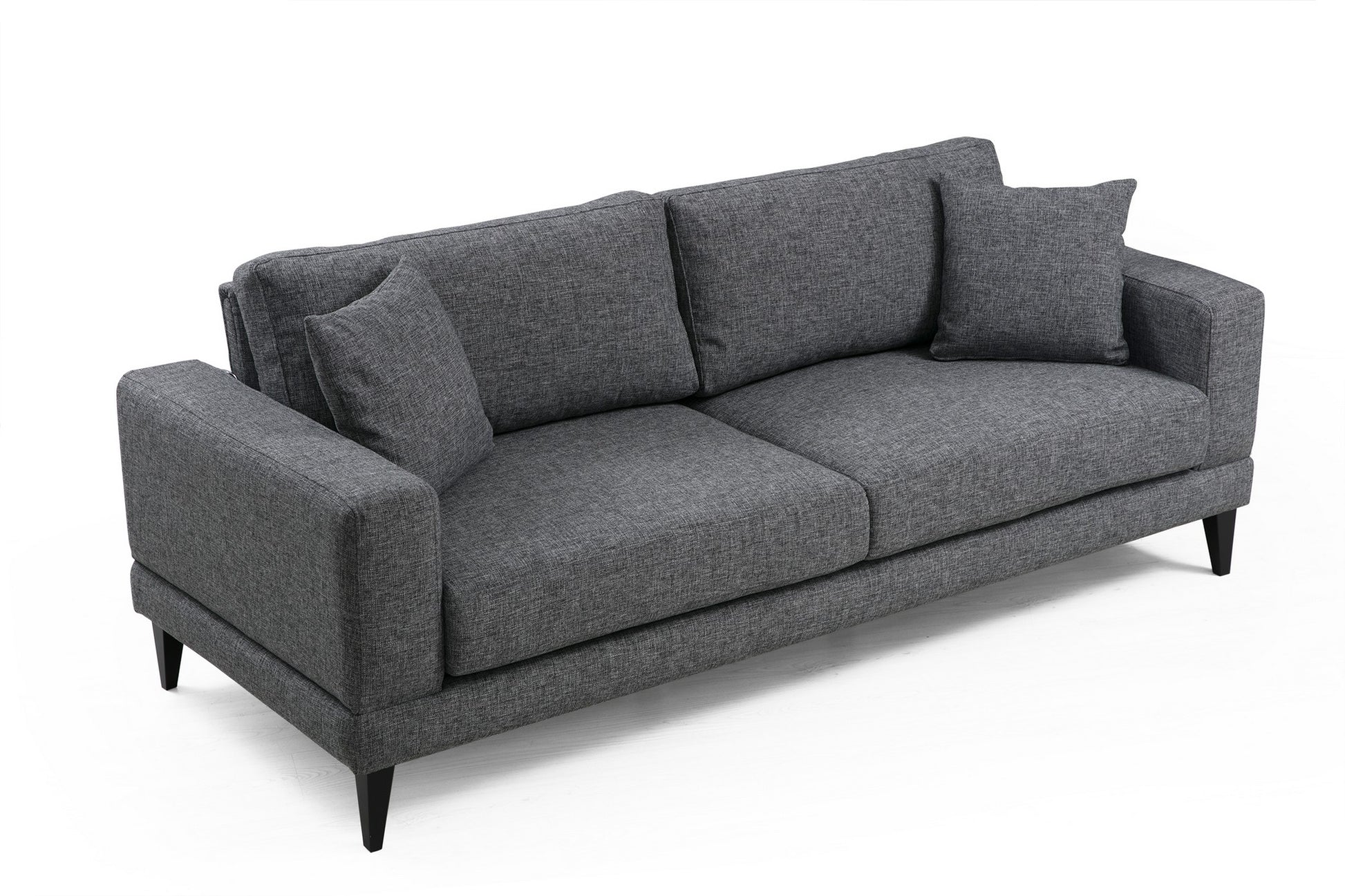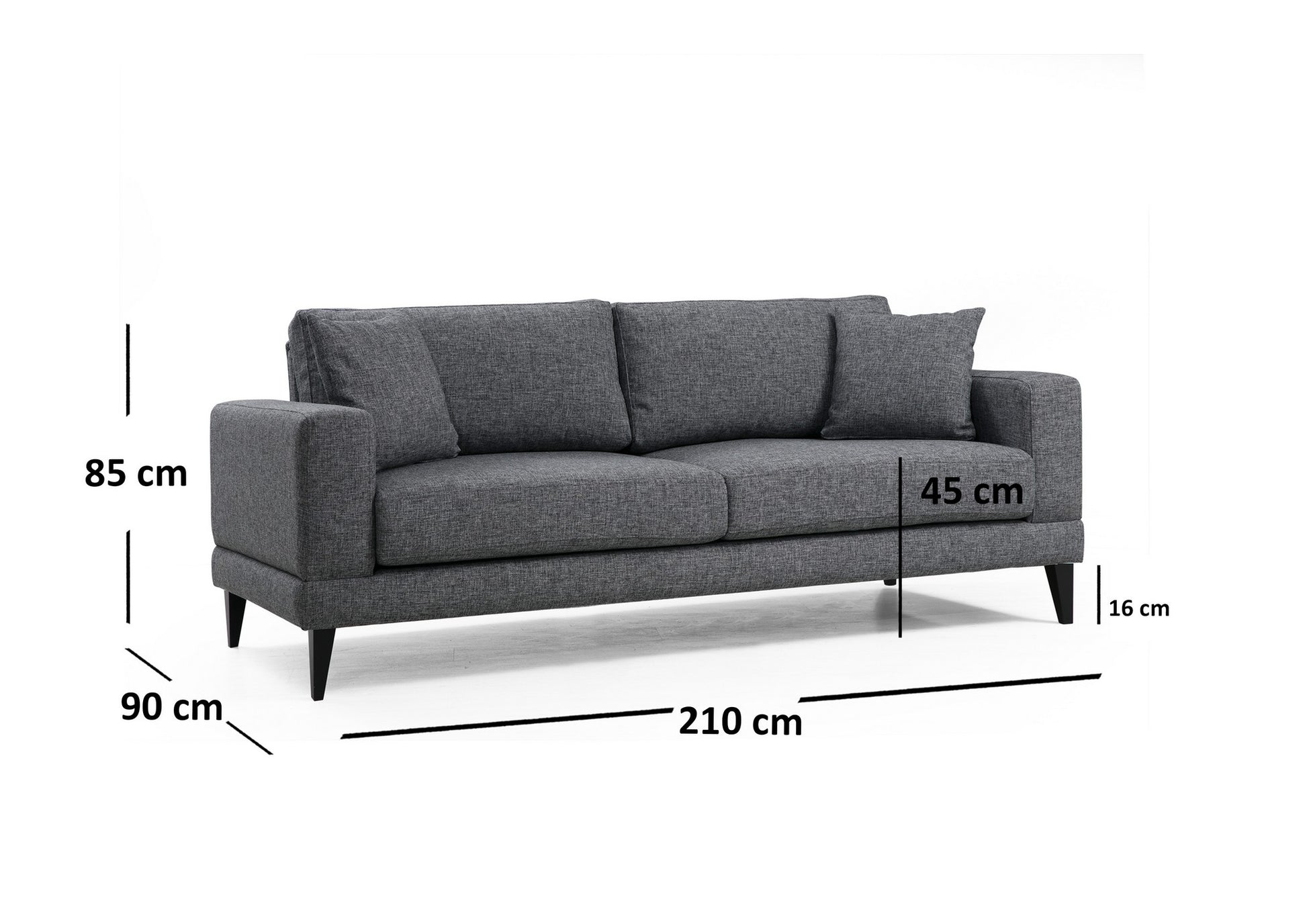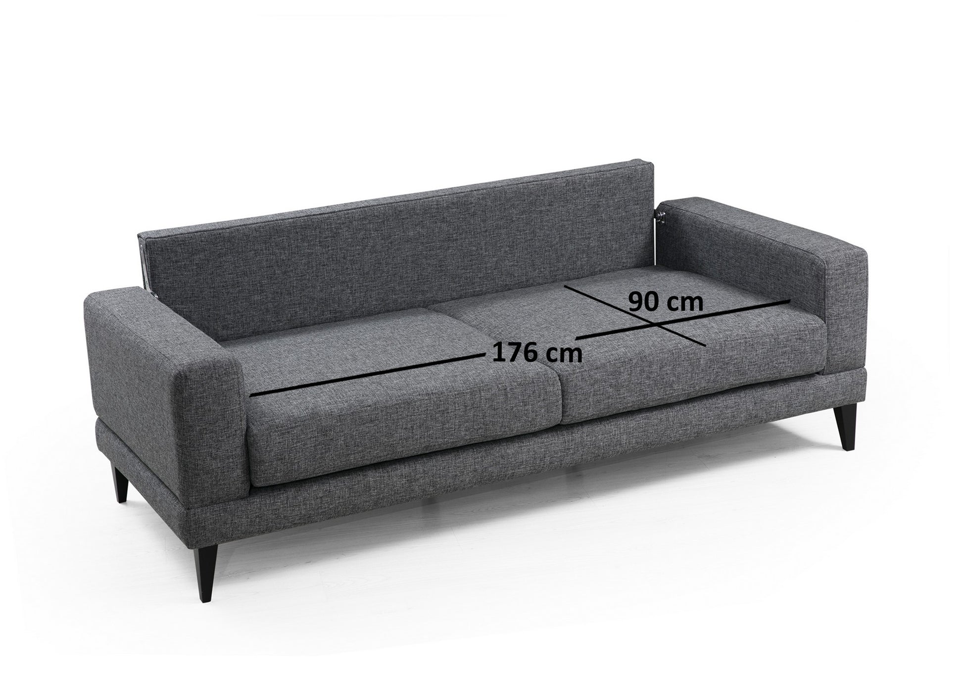 Sofá-cama de 3 lugares, cinza escuro, 210 x 90 x 85 cm | Estrutura em madeira de faia, 100% poliéster, encosto giratório, almofadas portáteis | Elegante e funcional para uma vida moderna