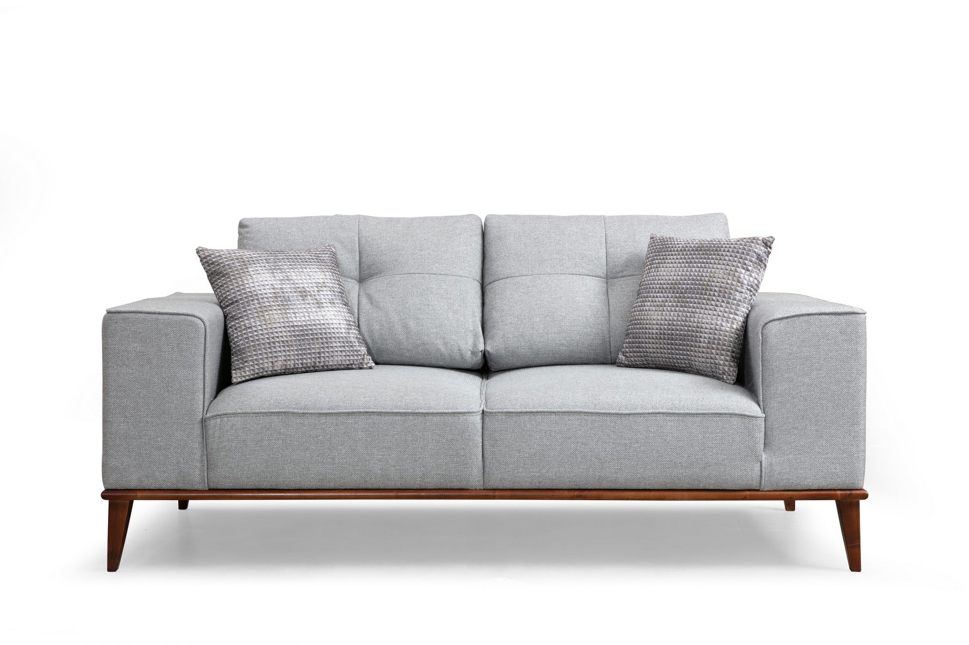 Sofá-cama elegante de 2 lugares, poliéster cinza, 184 x 91 x 85 cm | Estrutura em madeira de faia, pernas em nogueira, almofadas confortáveis de espuma | Perfeito para espaços modernos