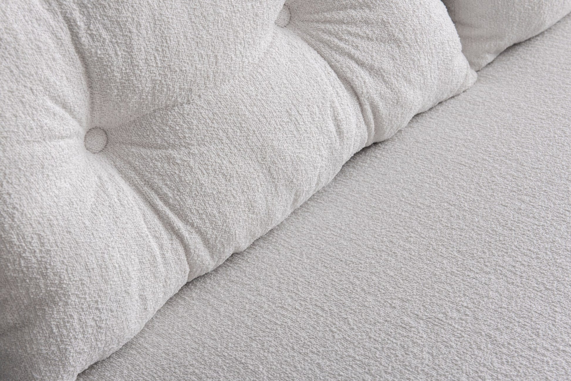 Feito com uma estrutura robusta de metal 100% e estofamento em TECIDO TEDDY macio, este sofá-cama oferece tanto durabilidade quanto luxo. A profundidade generosa do assento e a espessura do acolchoado proporcionam conforto absoluto, enquanto o design elegante adiciona um toque de sofisticação a qualquer ambiente.