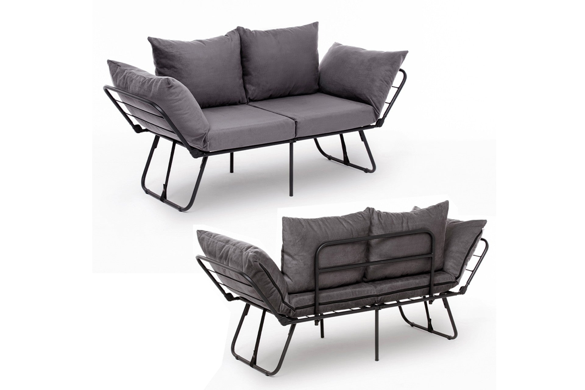 Com sua cor cinza elegante e design contemporâneo, este sofá-camas complementará sem esforço qualquer estilo de decoração. As linhas limpas e a silhueta minimalista fazem dele uma peça atemporal que realçará a aparência da sua sala de estar ou quarto de hóspedes.