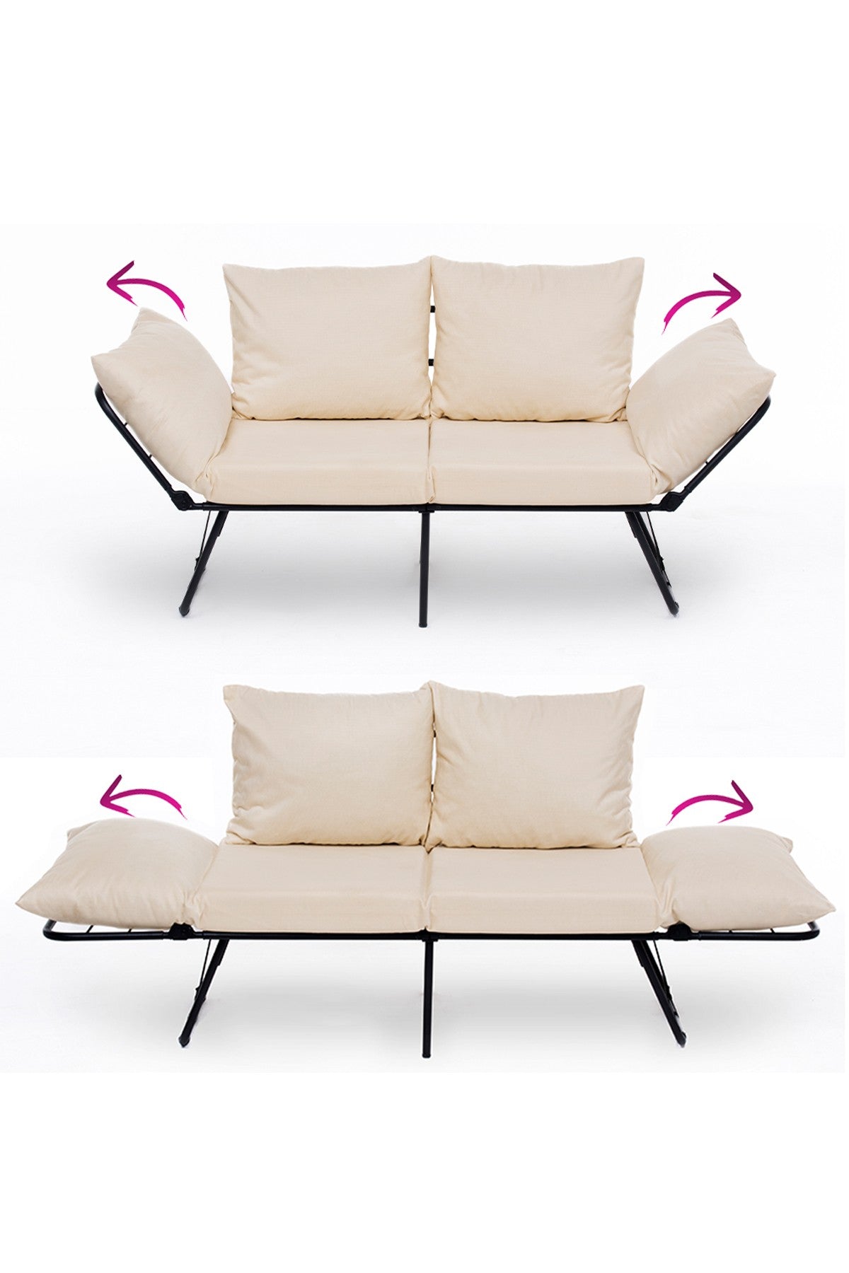 Com um simples mecanismo de clique, este sofá-cama se converte facilmente de sofá para cama em segundos, tornando-o perfeito para hóspedes inesperados ou noites de sono improvisadas. Os braços ajustáveis em 14 níveis permitem que você personalize a altura do apoio de braço de acordo com sua preferência, enquanto as generosas almofadas de assento e encosto oferecem amplo espaço para relaxamento.