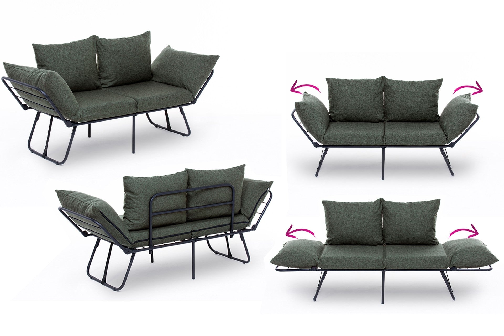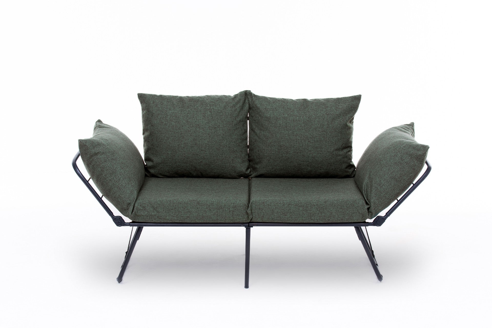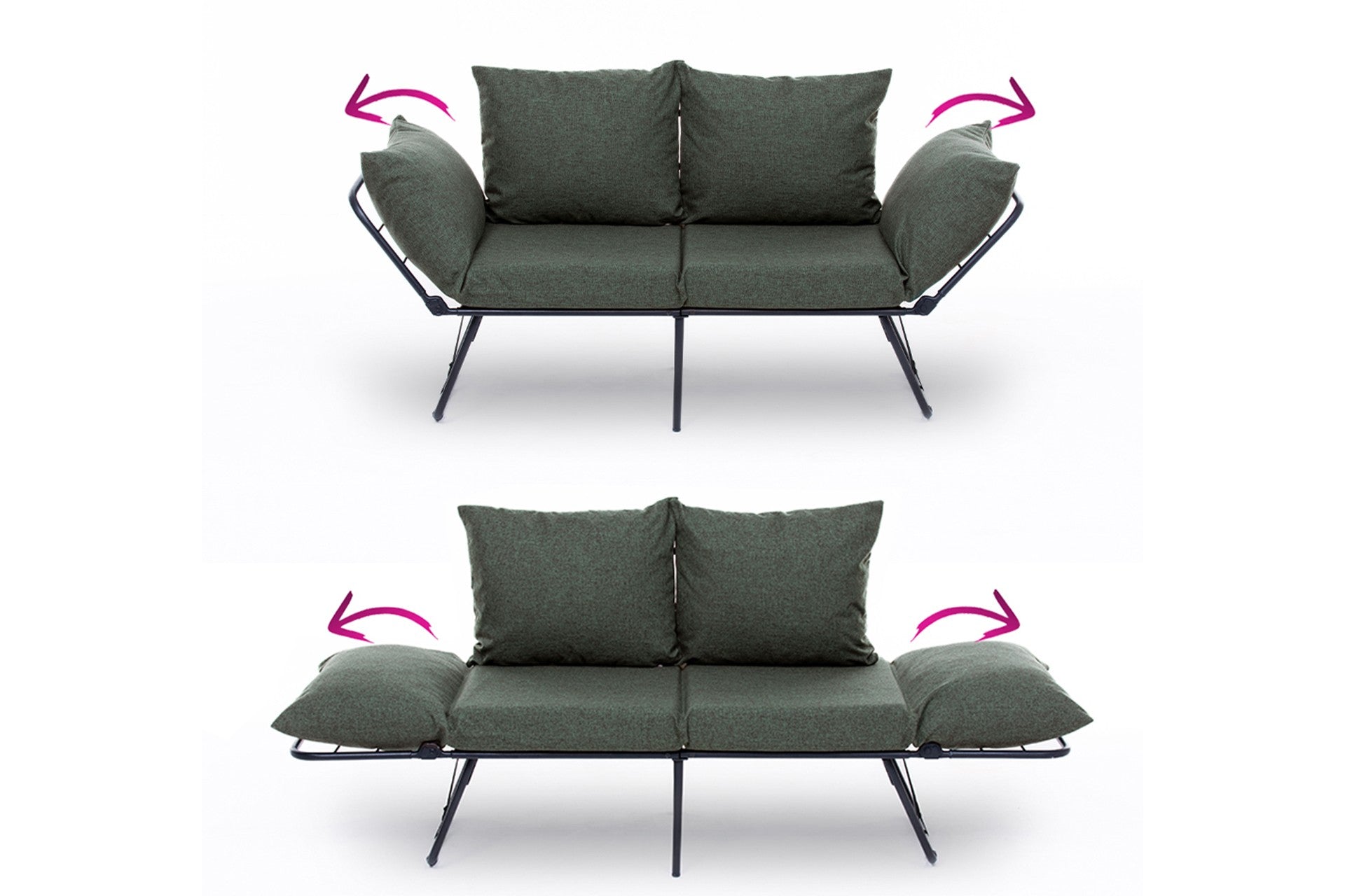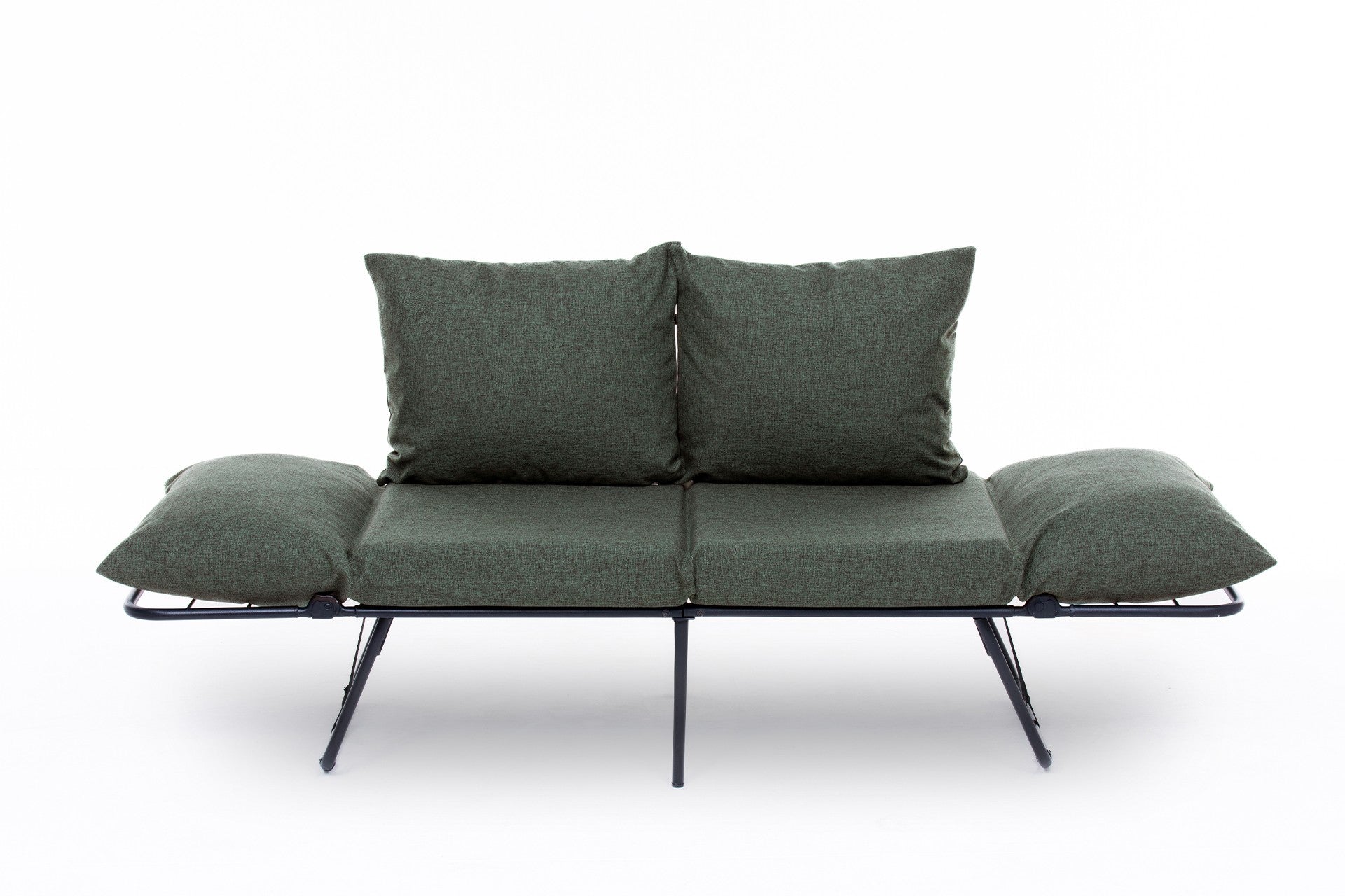 Construído com uma estrutura 100% metálica, este sofá-cama é feito para durar. A estrutura robusta garante estabilidade e durabilidade por muitos anos. O tecido de linho verde adiciona um toque de cor ao seu ambiente, criando uma atmosfera acolhedora e convidativa.