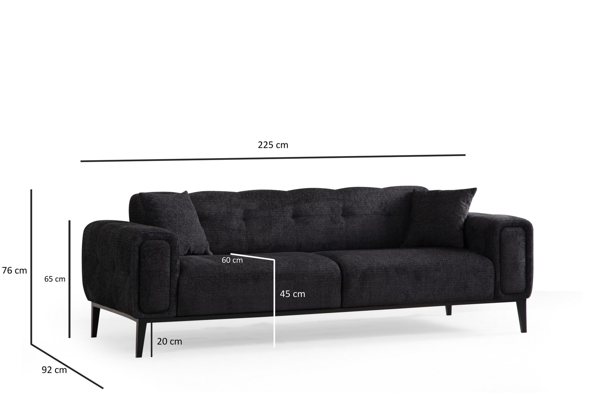 Sofá-cama elegante de 3 lugares, preto, 225 x 92 x 76 cm | Estrutura em madeira de faia, 100% poliéster, mecanismo giratório para as costas | Perfeito para espaços modernos