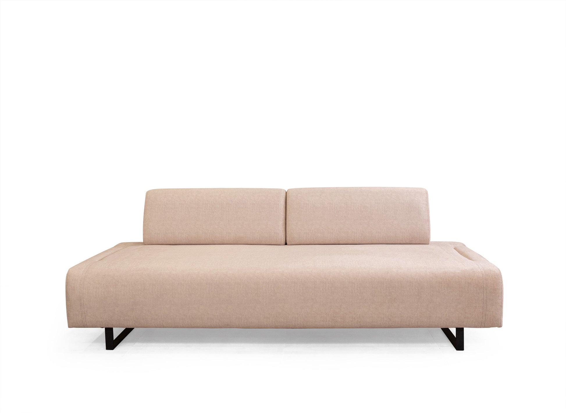 Sofá-cama bege de 3 lugares, estrutura em madeira de faia e aglomerado, 220x90x80 cm | 100% poliéster, almofadas portáteis, pernas de metal preto | Design elegante e funcional