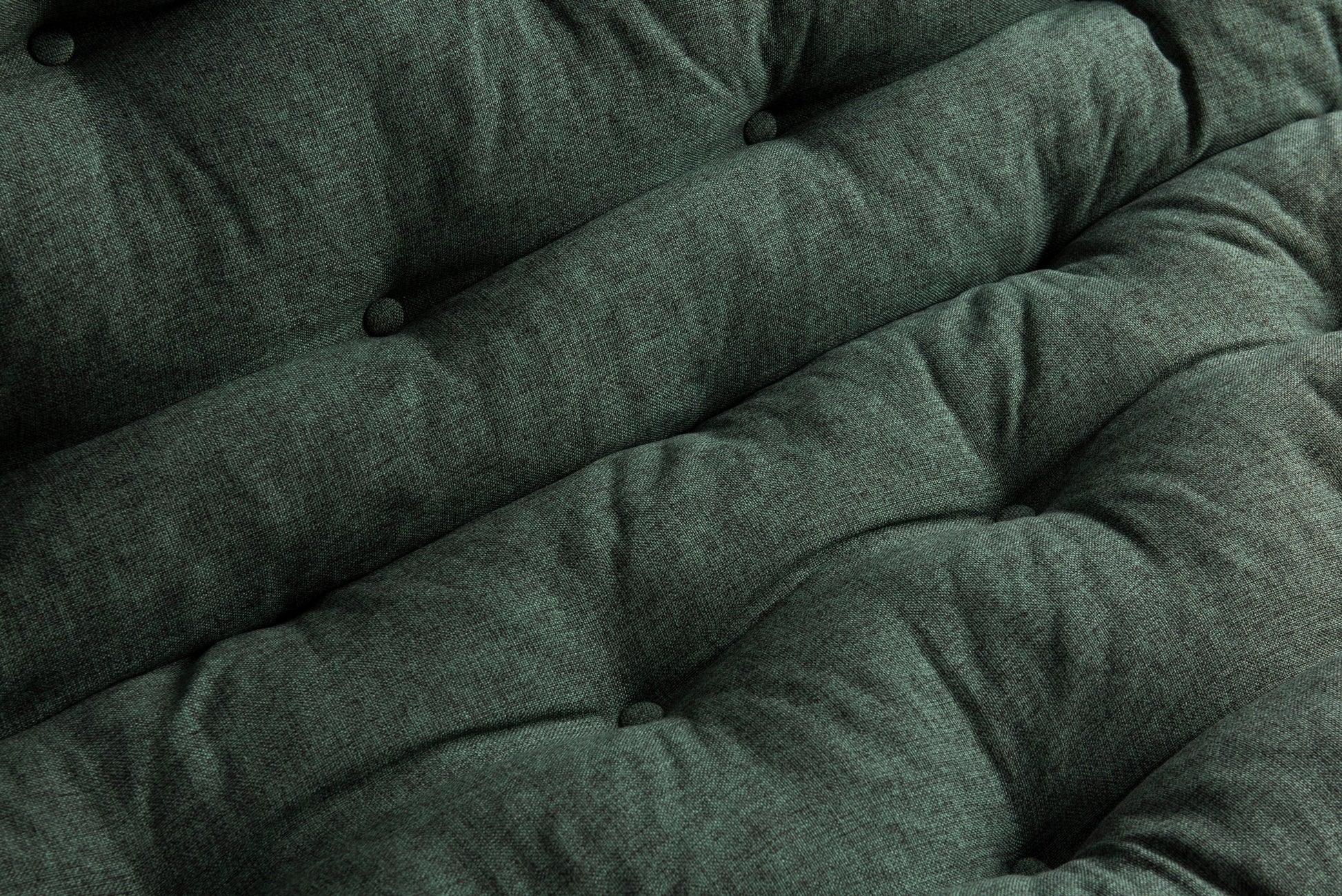 Fabricado com uma estrutura 100% metálica e pernas em madeira natural, este sofá-cama não só exala elegância como também garante uma durabilidade duradoura. A cor verde deslumbrante dá um toque de sofisticação a qualquer divisão, tornando-o num ponto focal da sua decoração.