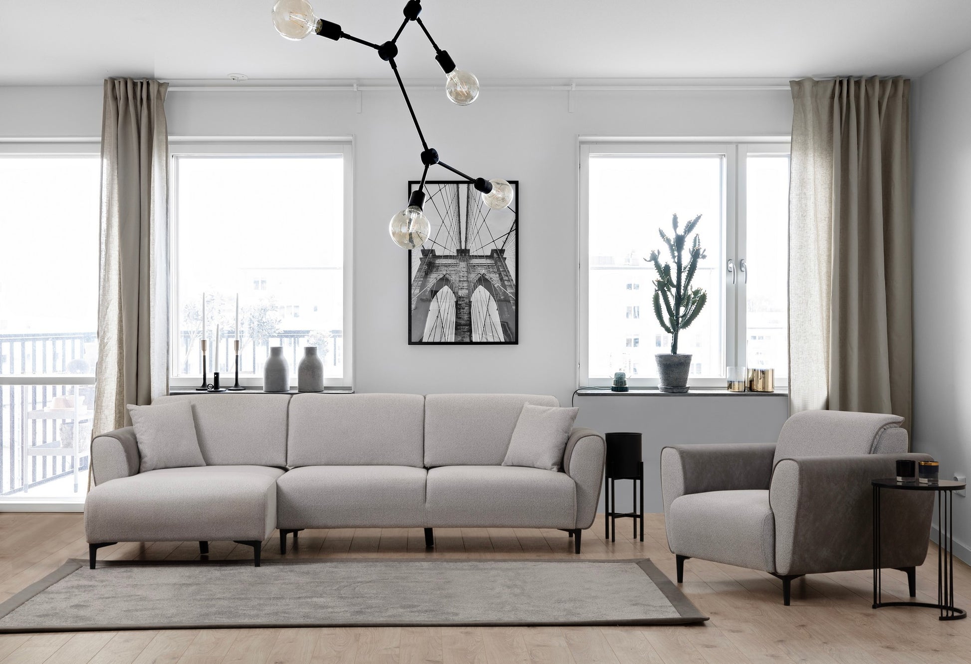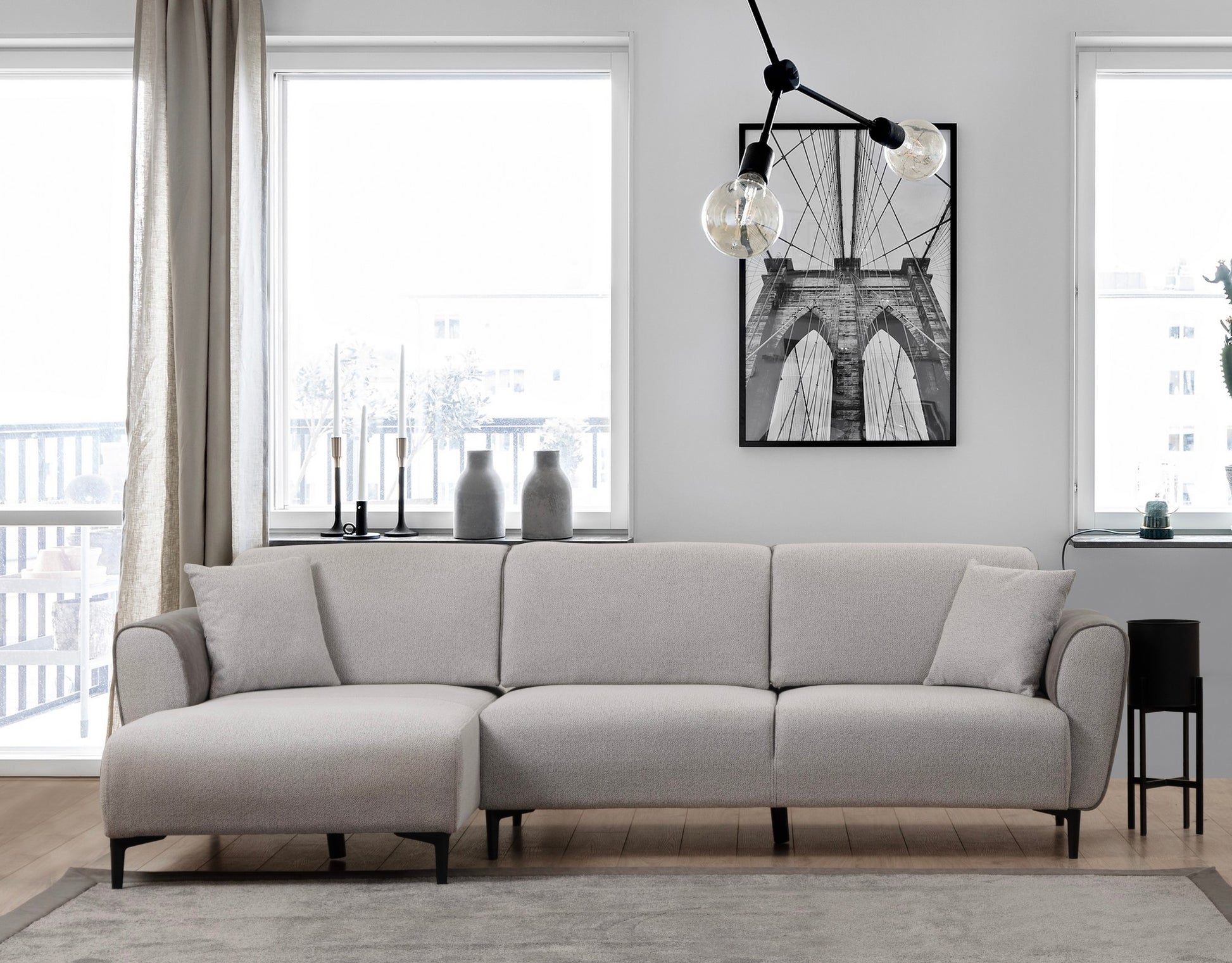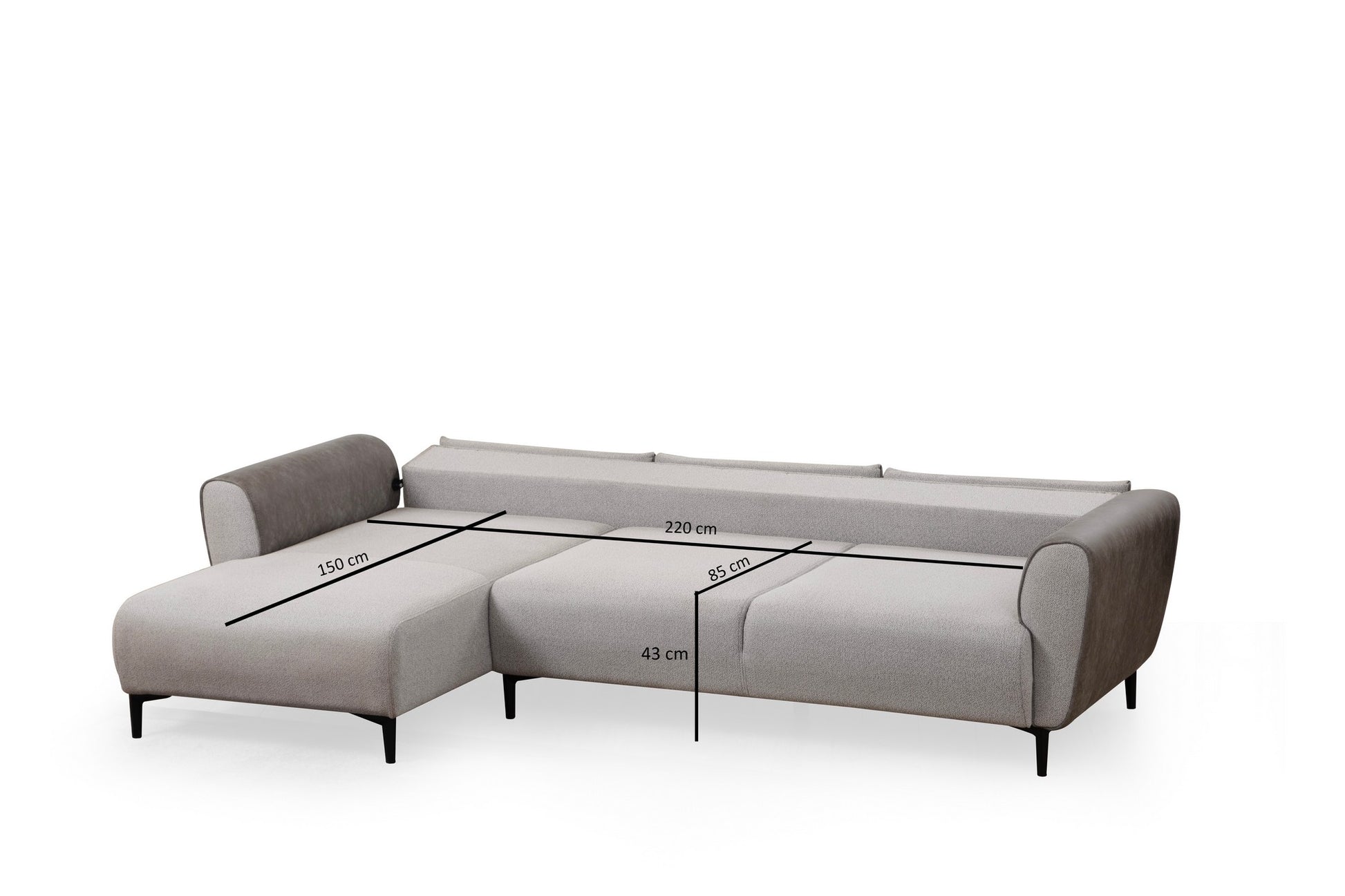 Sofá-cama de canto elegante, cinza, 150 x 260 cm | Estrutura em madeira de faia e aglomerado, 100% poliéster | Mecanismo giratório, tecido fácil de limpar, design moderno