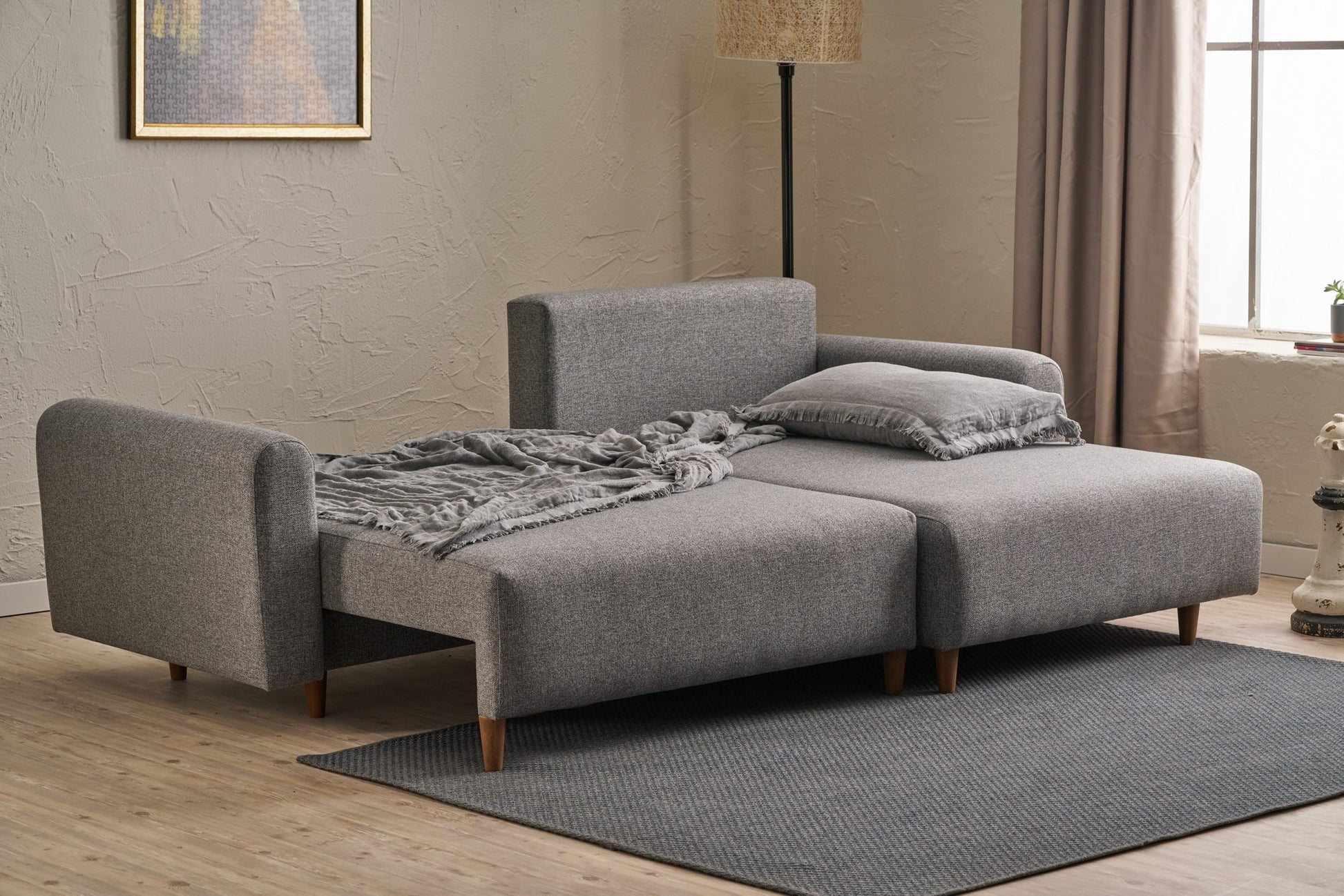 Com o seu design de canto inteligente, este sofá-cama é perfeito para espaços pequenos, onde cada centímetro conta. O tamanho da cama de 210 x 135 cm proporciona um amplo espaço para dormir aos seus convidados sem ocupar muito espaço na sua área de estar.
