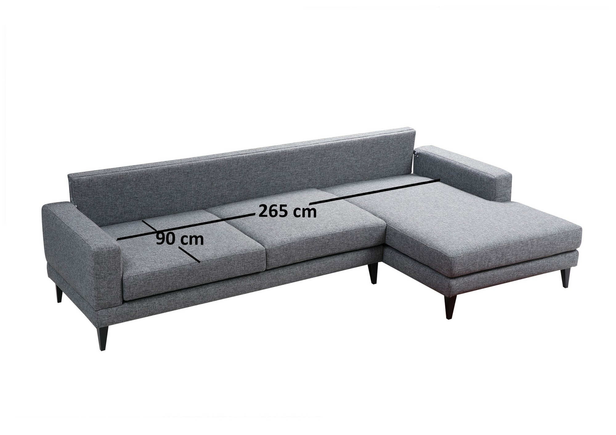 Sofá-cama de canto elegante, cinza escuro, 303 x 160 x 90 cm | Estrutura em madeira de faia e aglomerado, 100% poliéster, almofadas portáteis | Perfeito para espaços modernos