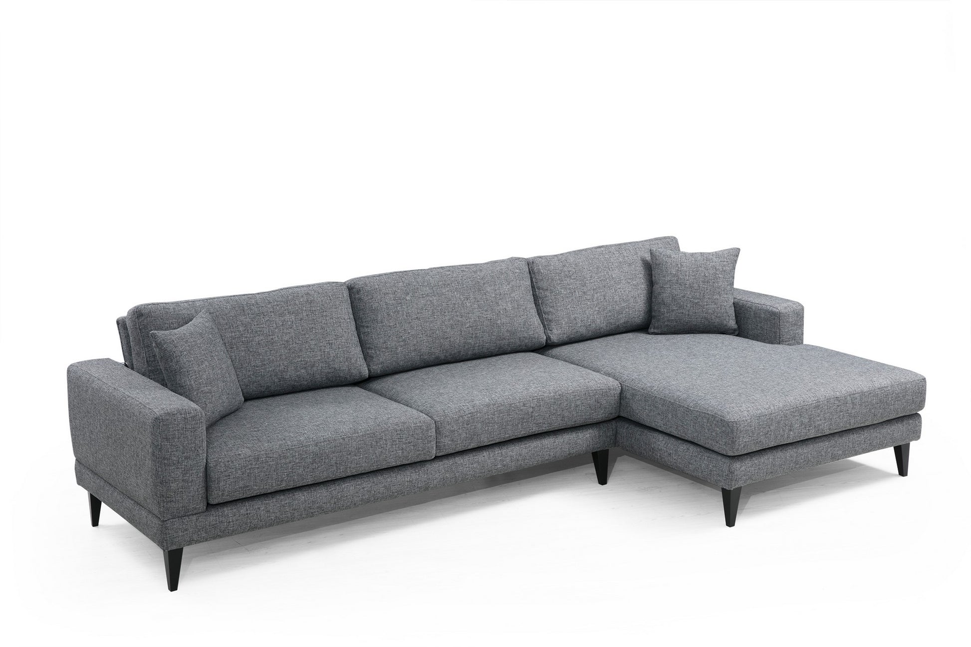 Com um design elegante e moderno, este sofá-cama de canto integra-se sem esforço em qualquer decoração interior. A cor cinzenta escura sólida acrescenta um toque de sofisticação, enquanto as pernas em plástico rígido preto proporcionam um toque contemporâneo. Abrace a estética industrial e escandinava, criando uma atmosfera elegante e convidativa na sua sala de estar.