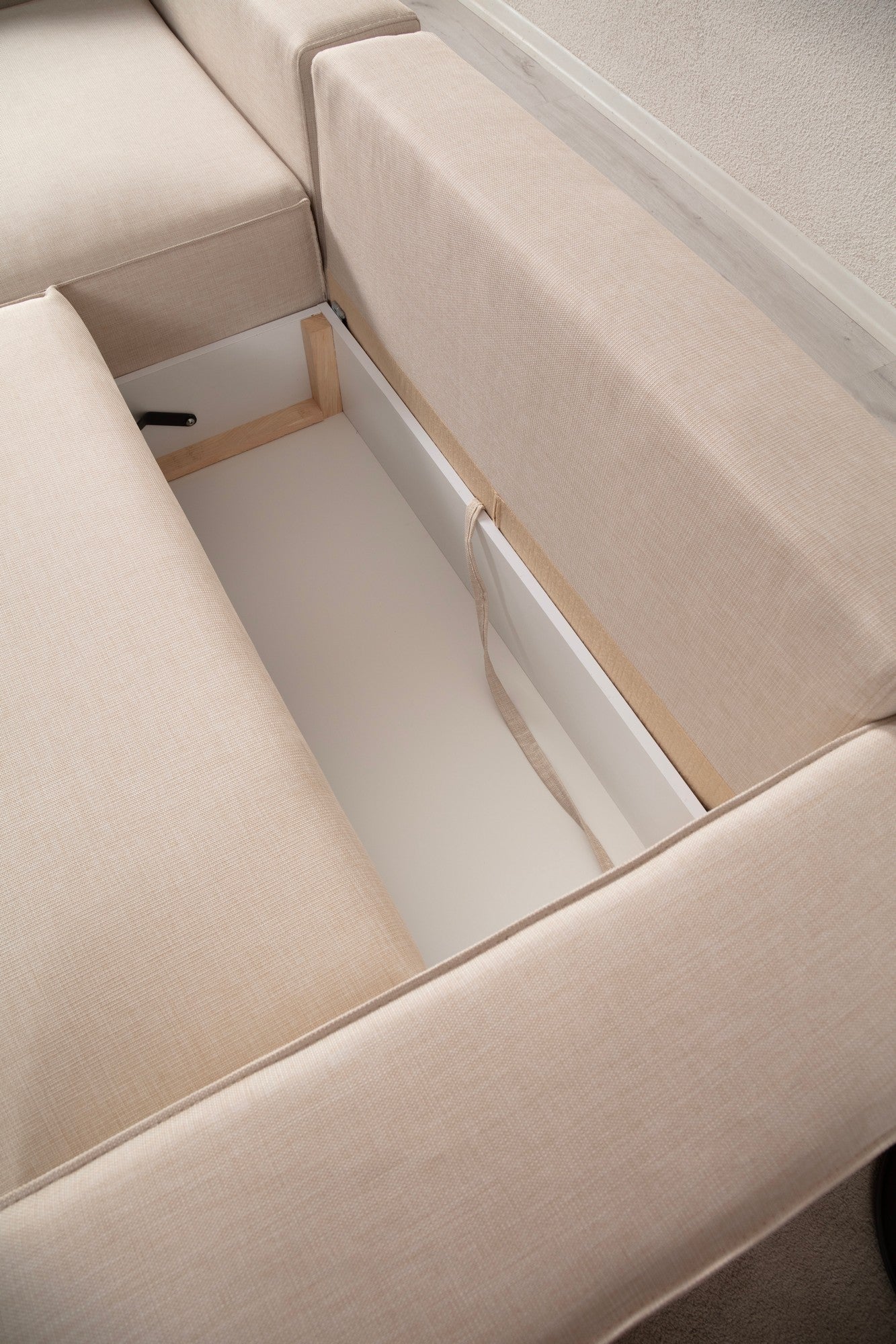 O nosso sofá-cama de canto é fabricado com o máximo cuidado e atenção aos pormenores. A estrutura é feita de madeira de faia e aglomerado de alta qualidade, garantindo durabilidade e estabilidade. O tecido 100% poliéster não só é suave ao toque, como também é fácil de limpar, o que o torna perfeito para famílias e donos de animais de estimação.