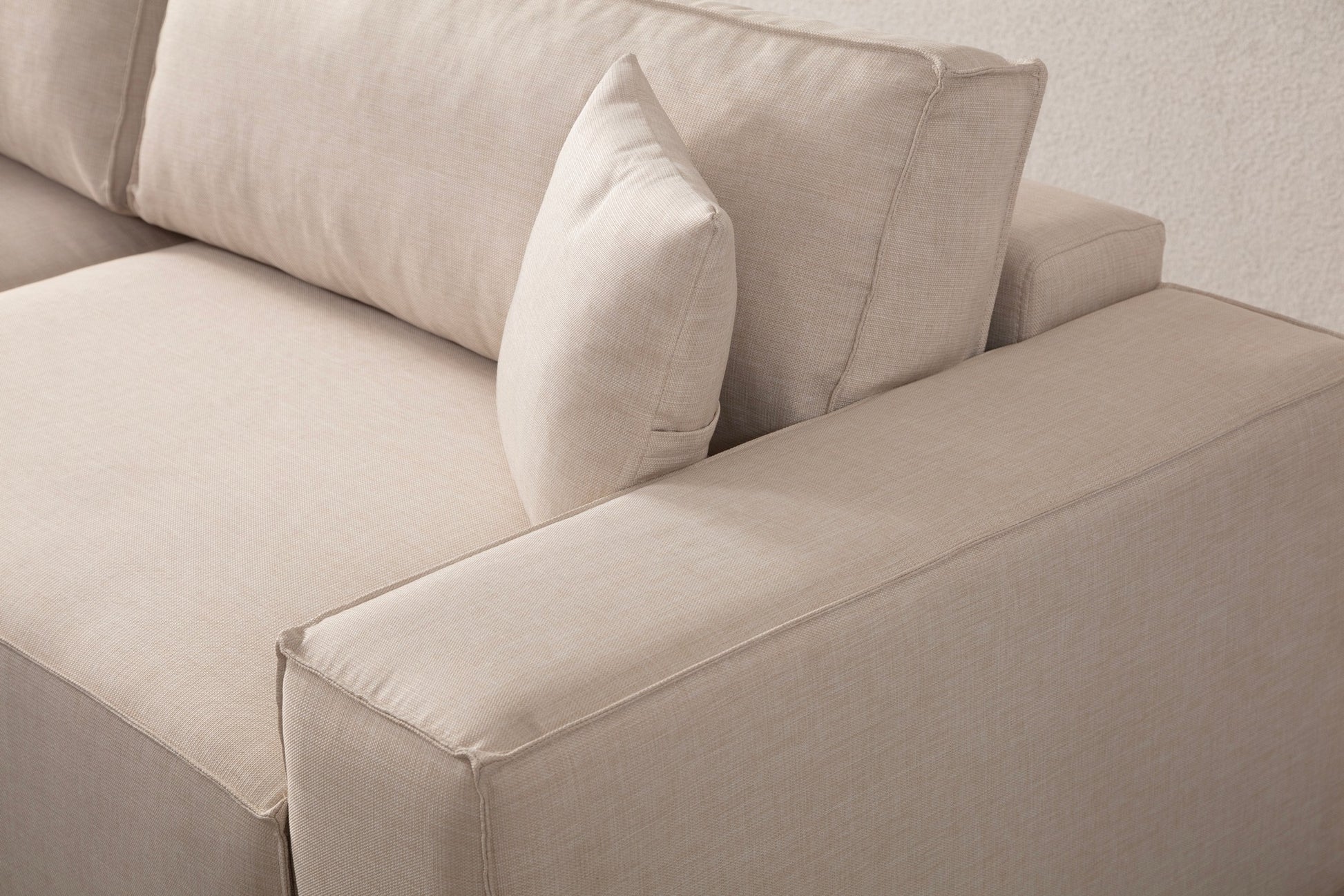 Sofá-cama de canto elegante, cru, 260 cm | Estrutura em madeira de faia e aglomerado, 100% poliéster | Mecanismo deslizante, espuma macia, perfeito para espaços modernos
