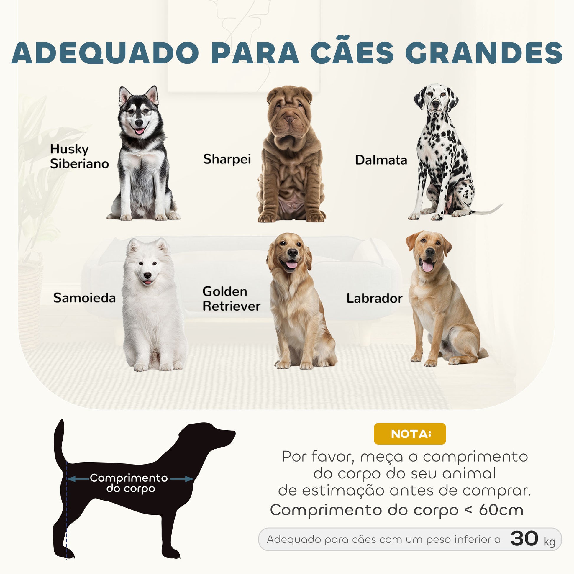 - Usos recomendados: Adequado para cães grandes de até 30 kg e 60 cm de comprimento corporal