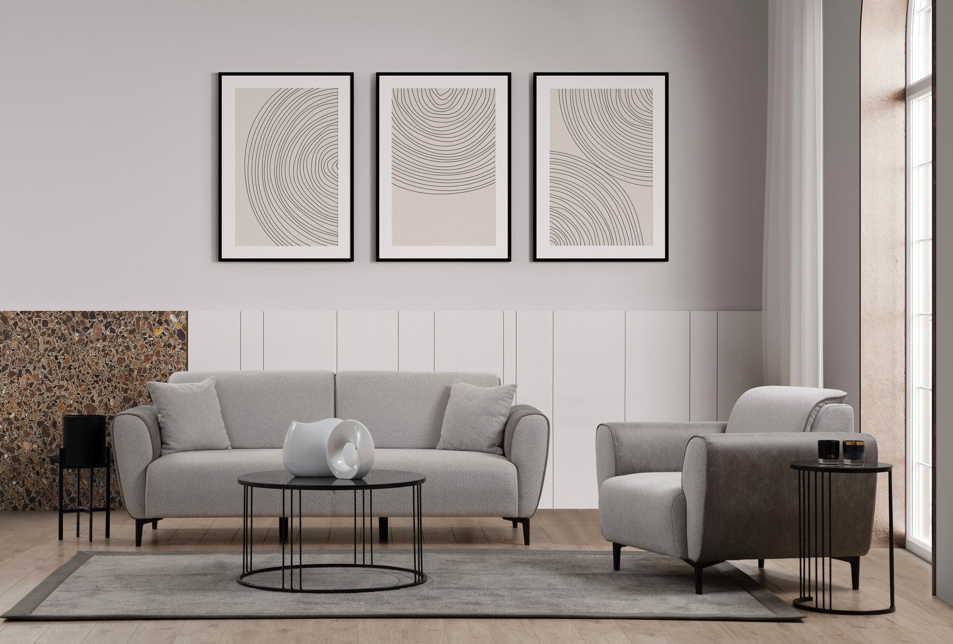 Poltrona elegante de 1 lugar, cinza, 100 cm | Estrutura em madeira de faia e aglomerado, tecido 100% poliéster | Almofadas de espuma macia, fácil de limpar, design moderna