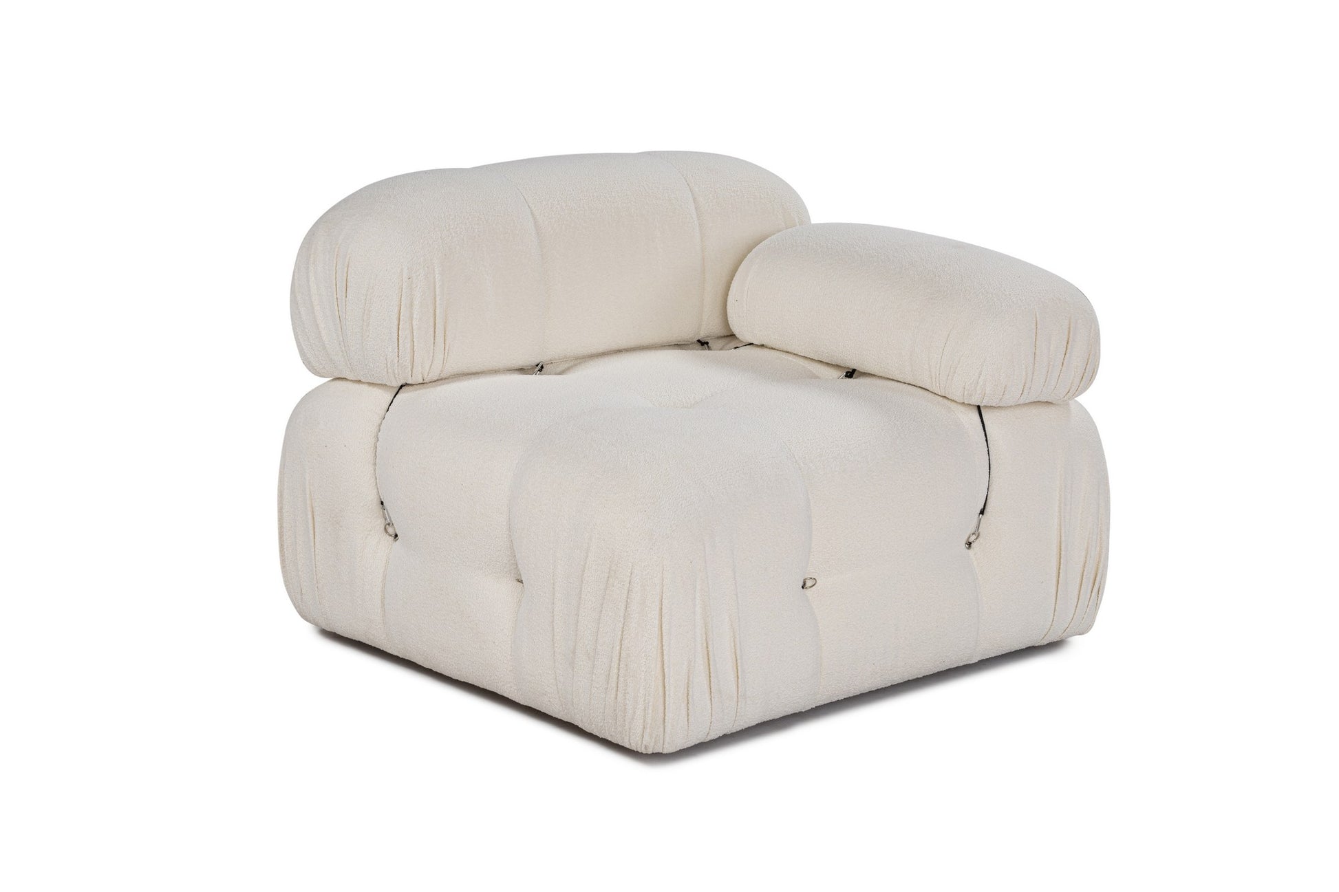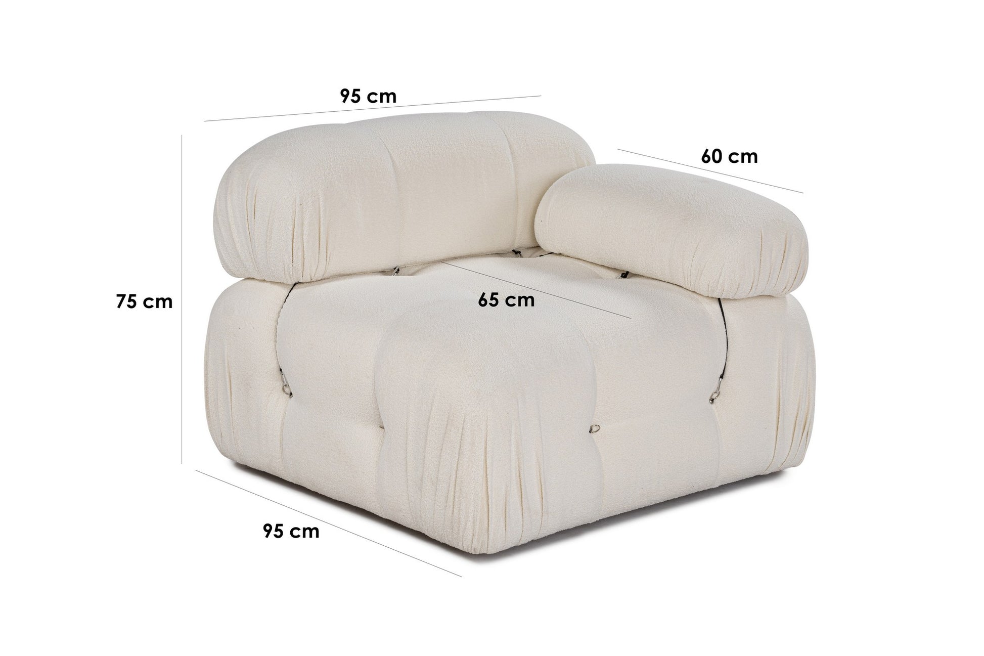 Poltrona elegante de 1 lugar, branco, 95 x 95 x 75 cm | Estrutura em madeira de faia e aglomerado, 100% poliéster, encosto e braço removíveis | Design moderna e personalizável