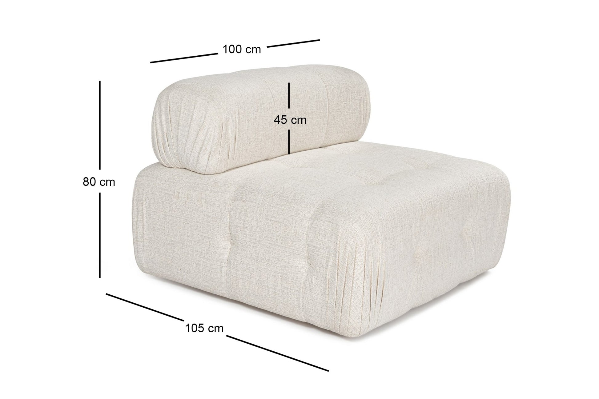 Delicie-se com a pura elegância e sofisticação do nosso Sofá de 1 Lugar. Elaborado com a máxima precisão, este sofá é um testemunho da perfeita combinação de estilo e conforto. Seu design elegante e a luxuosa cor creme complementam qualquer decoração de interior, adicionando um toque de opulência à sua casa.