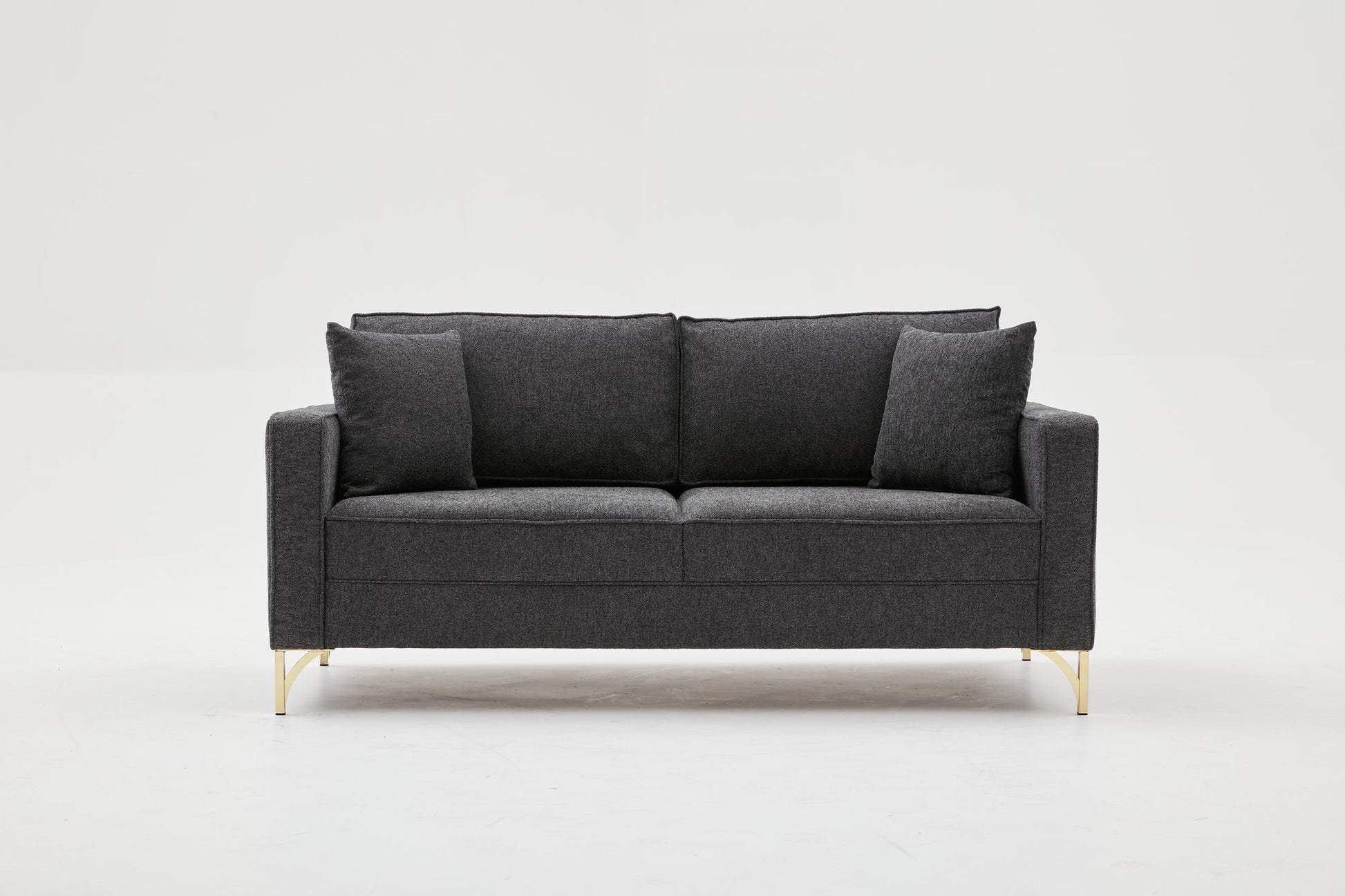 Sofá moderno de 2 lugares – 180 cm – Antracite e dourado – Madeira de faia e 100% poliéster