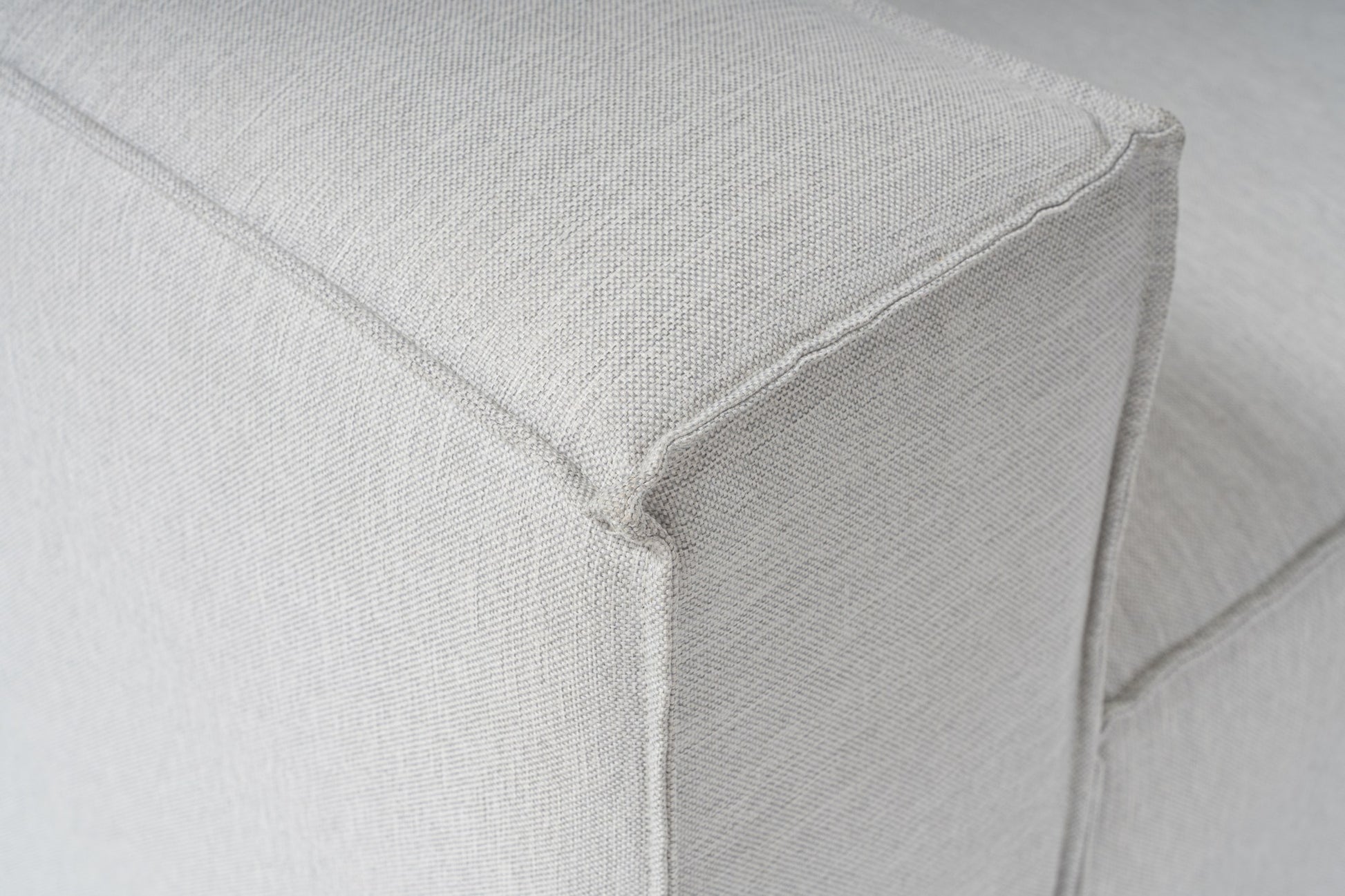 O tecido 100% linho não só é suave ao toque, como também é fácil de limpar, facilitando a manutenção. A largura generosa do assento, de 248 cm, proporciona um espaço amplo para si e para os seus entes queridos relaxarem e descontraírem juntos. A largura da perna do braço de 24 cm oferece o equilíbrio perfeito entre apoio e conforto, enquanto a altura do assento de 43 cm permite um descanso fácil.