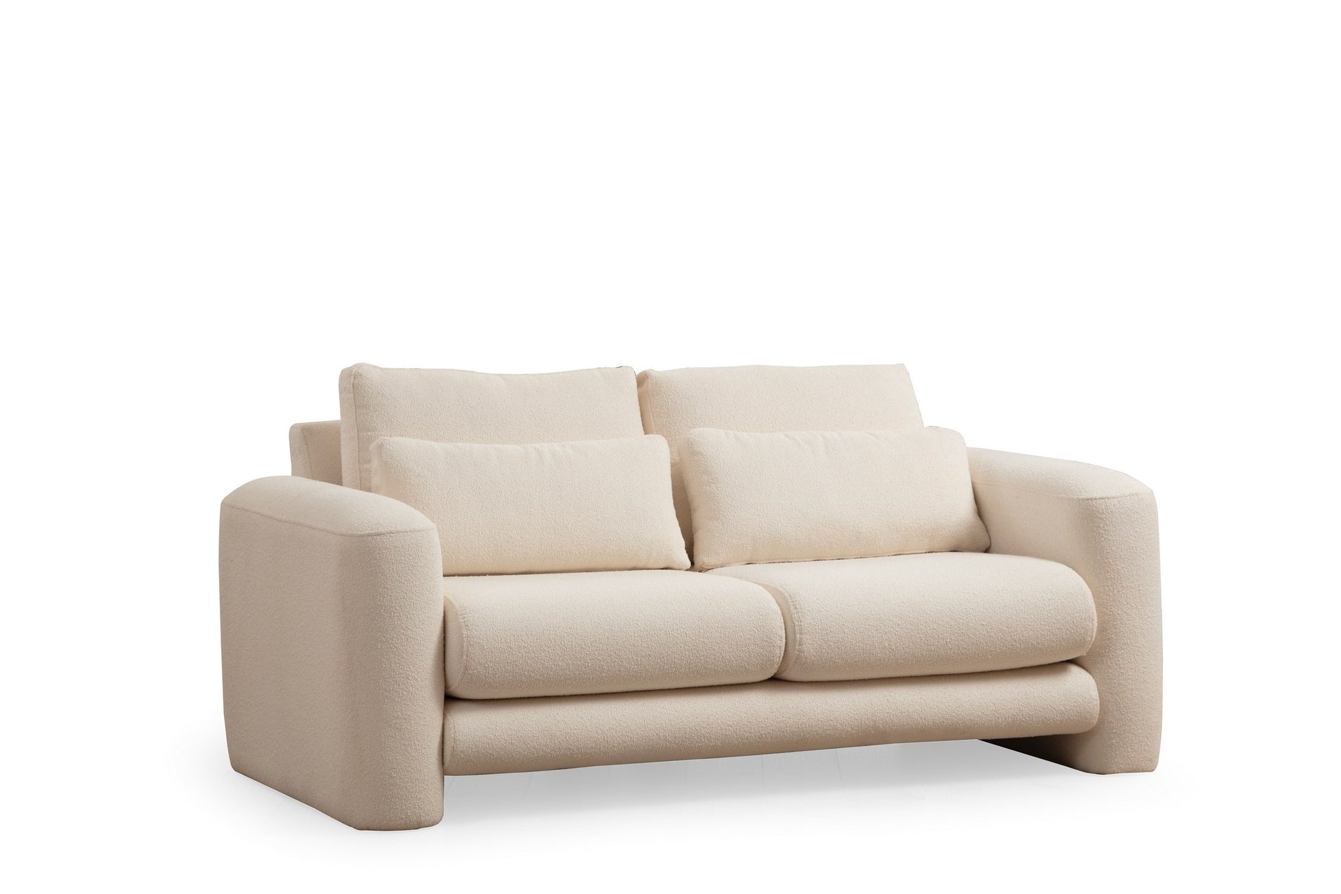 Sofá elegante de 2 lugares, cor creme, 180 x 97 x 73 cm | Estrutura em madeira de faia e aglomerado, 100% poliéster, almofadas portáteis | Conforto elegante para espaços de convivência modernos