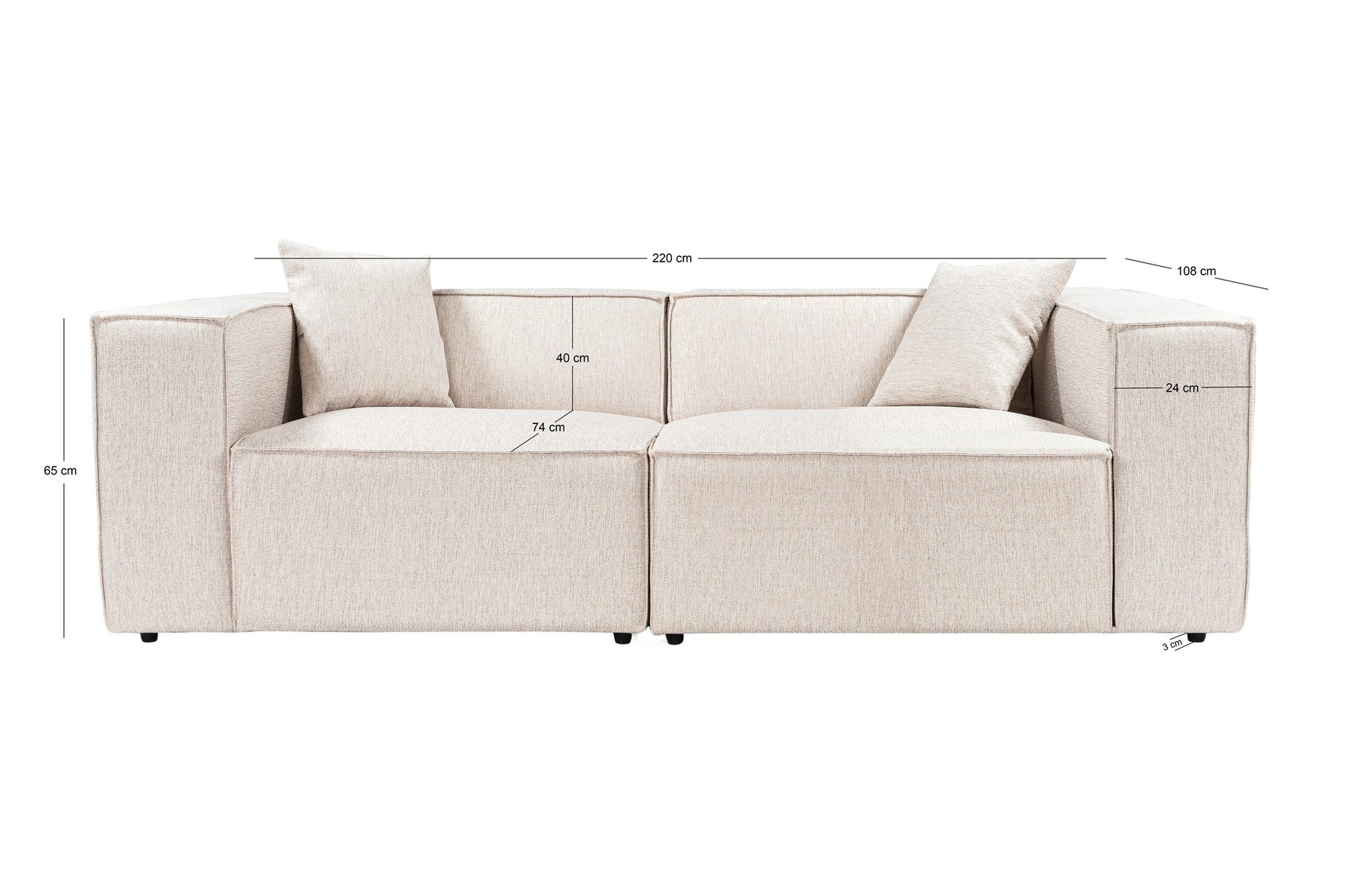 Sofá marrom claro de 2 lugares, 220 cm | Estrutura 100% madeira de carpa, tecido 100% linho, espuma 32 DNS, inclui 2 almofadas | Elegante e confortável para espaços modernos