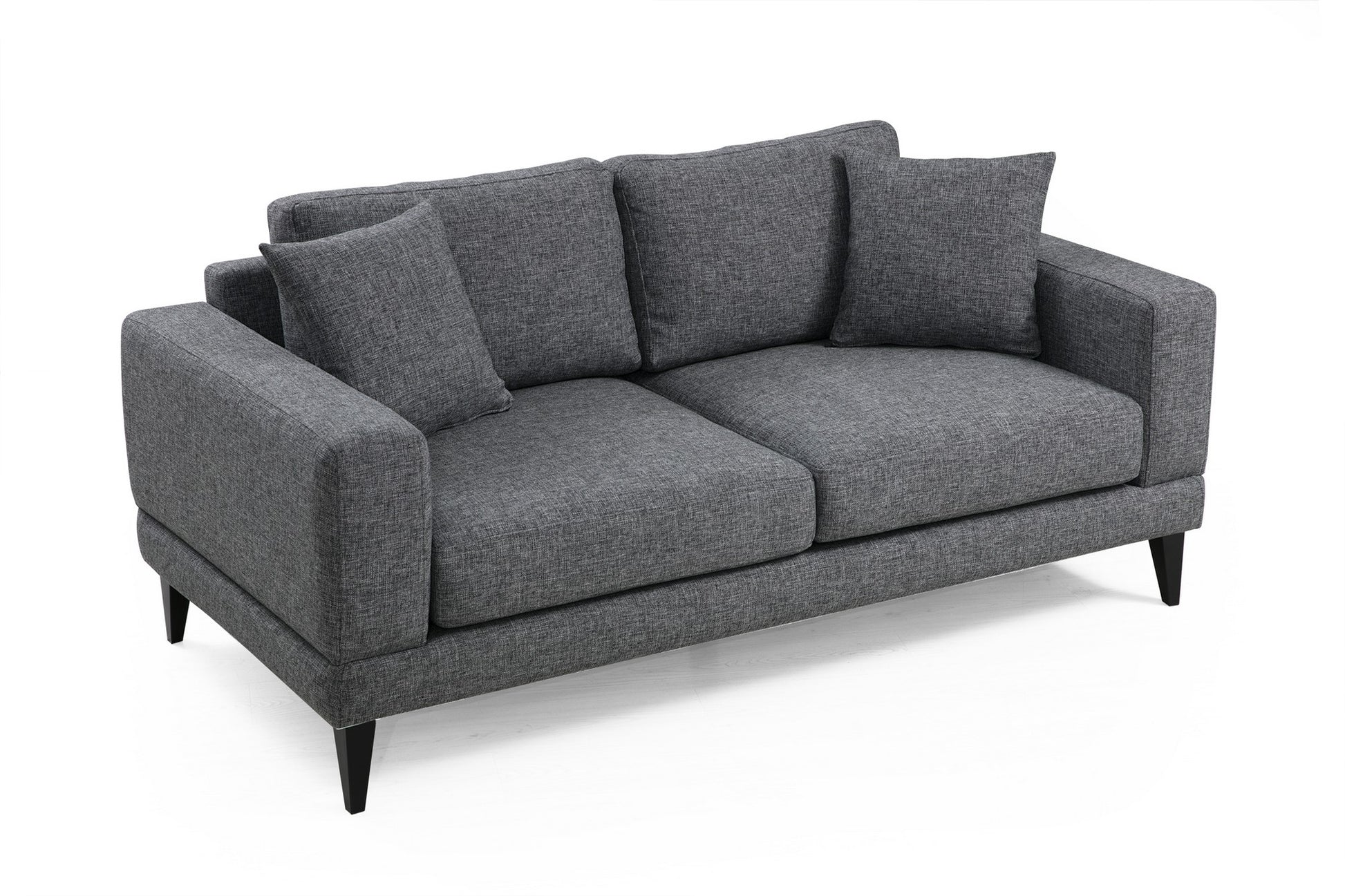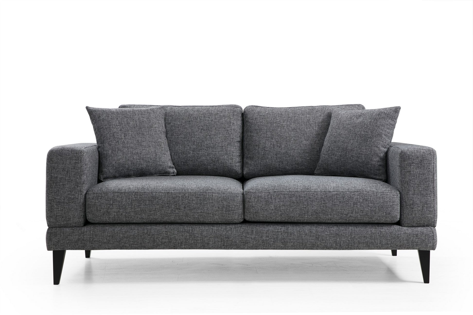 Sofá elegante de 2 lugares, cinza escuro, 180 x 90 x 85 cm | Estrutura em madeira de faia, 100% poliéster, almofadas confortáveis de espuma | Perfeito para espaços modernos e industriais