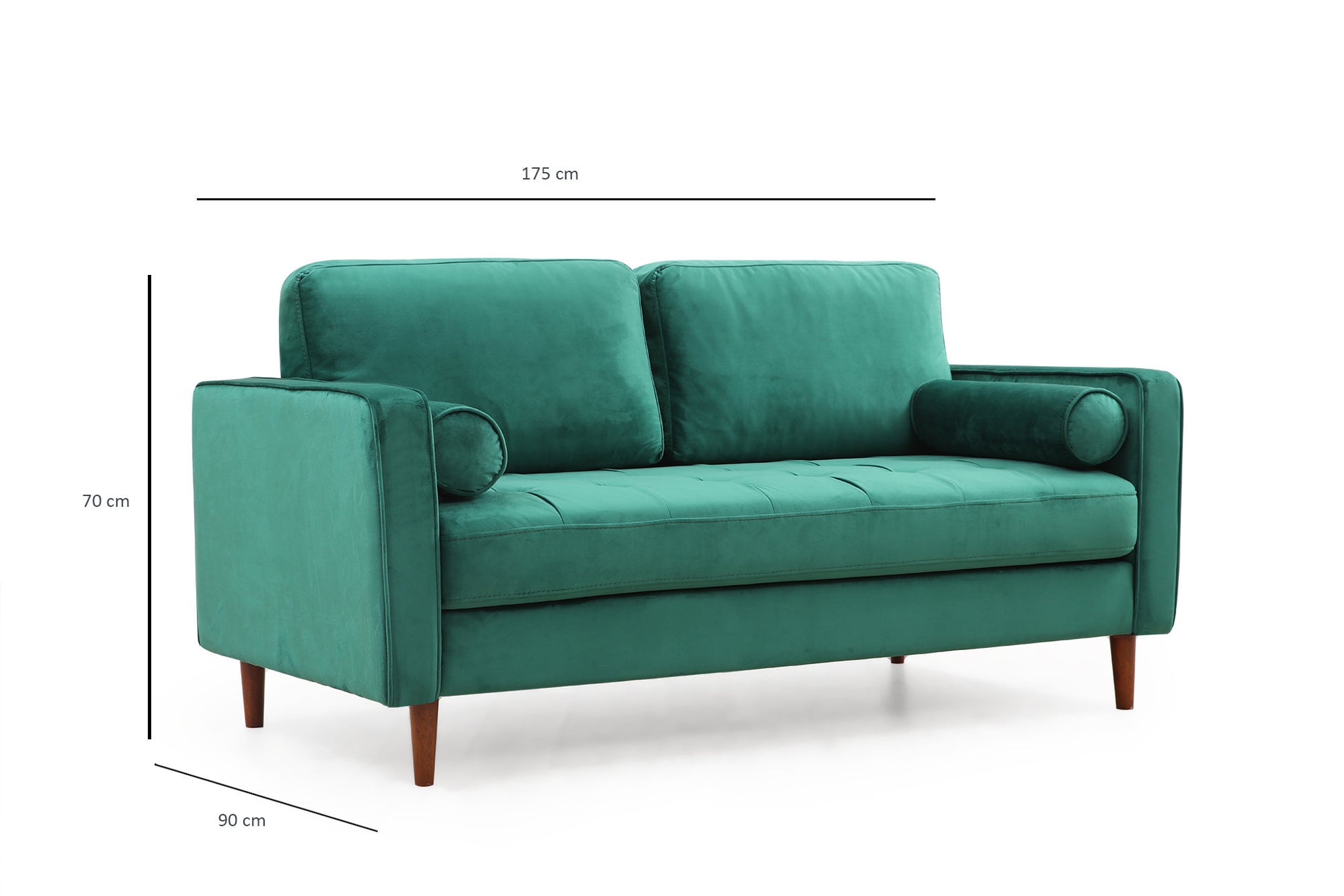 Sofá elegante de 2 lugares, verde menta, 175 x 90 x 70 cm | Estrutura em madeira de faia, 100% poliéster, inclui 2 almofadas | Perfeito para espaços modernos