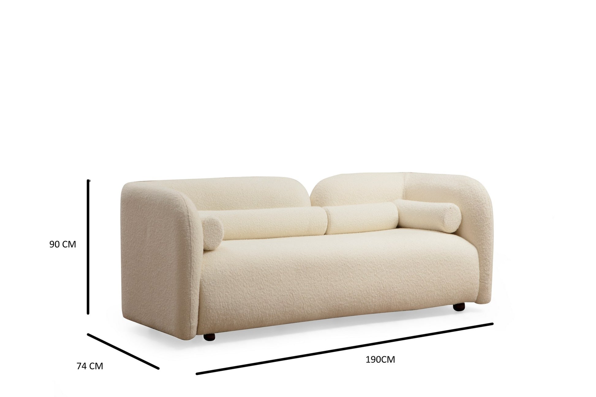 Sofá de 2 lugares – 190 x 74 x 90 cm – cor creme – madeira de faia e aglomerado
