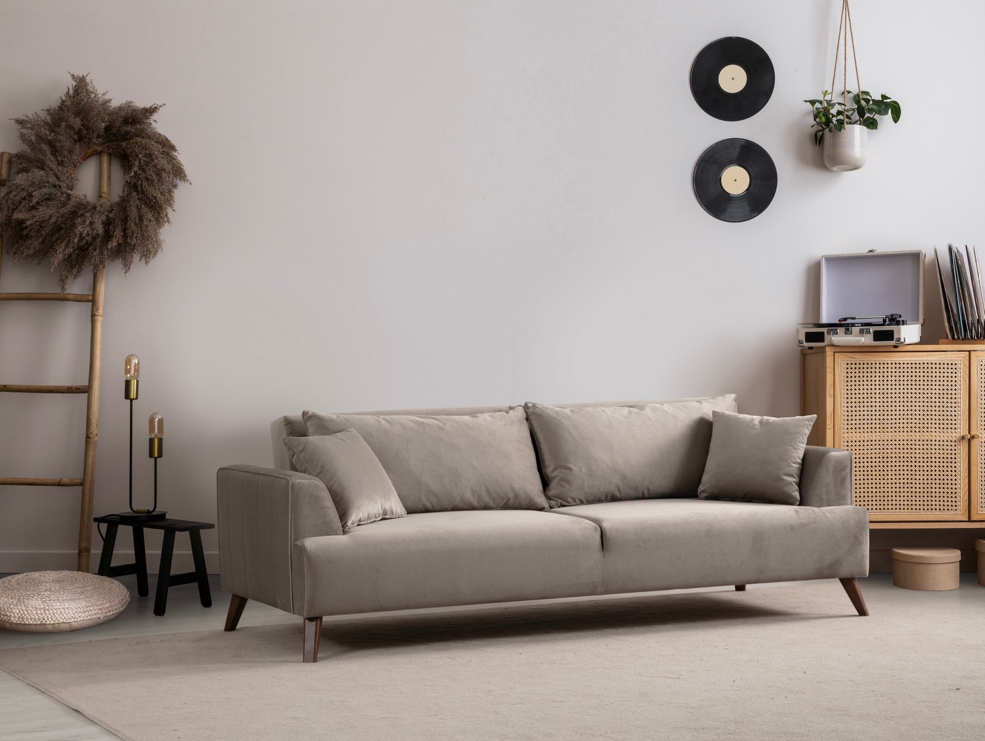 Transforme a sua sala de estar num refúgio de relaxamento e elegância com o nosso requintado sofá de 3 lugares. Fabricado com o máximo cuidado e atenção aos pormenores, este sofá foi concebido para lhe proporcionar um conforto e estilo inigualáveis.