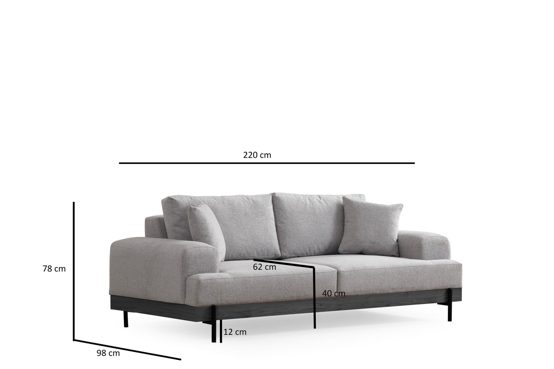 Com as suas dimensões de 220 cm de comprimento, 98 cm de largura e 78 cm de altura, este sofá é perfeito para qualquer sala de estar, lounge ou espaço de escritório. A almofada de assento fixa e a almofada de costas portátil oferecem flexibilidade e comodidade.