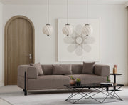 Sofá elegante de 3 lugares, marrom, 225 x 93 x 75 cm | Estrutura em madeira de faia e aglomerado, 100% poliéster, almofadas de espuma macia | Design moderno com pernas de metal preto