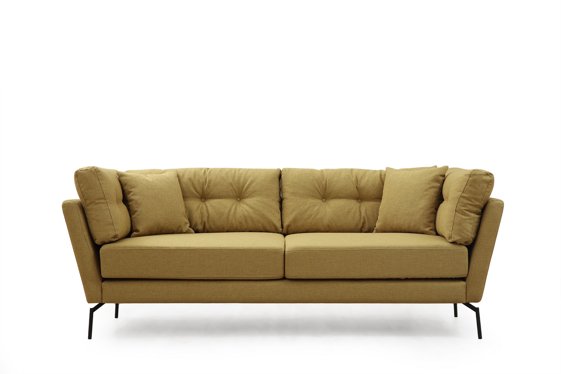 Com a sua cor amarela esverdeada única, o nosso sofá dá um toque de vibração a qualquer divisão. O design de cor sólida, combinado com o conceito escandinavo industrial elegante e moderno, cria um aspeto sofisticado e elegante que impressionará os seus convidados. As pernas em metal preto mate dão um toque de elegância e completam a estética geral.