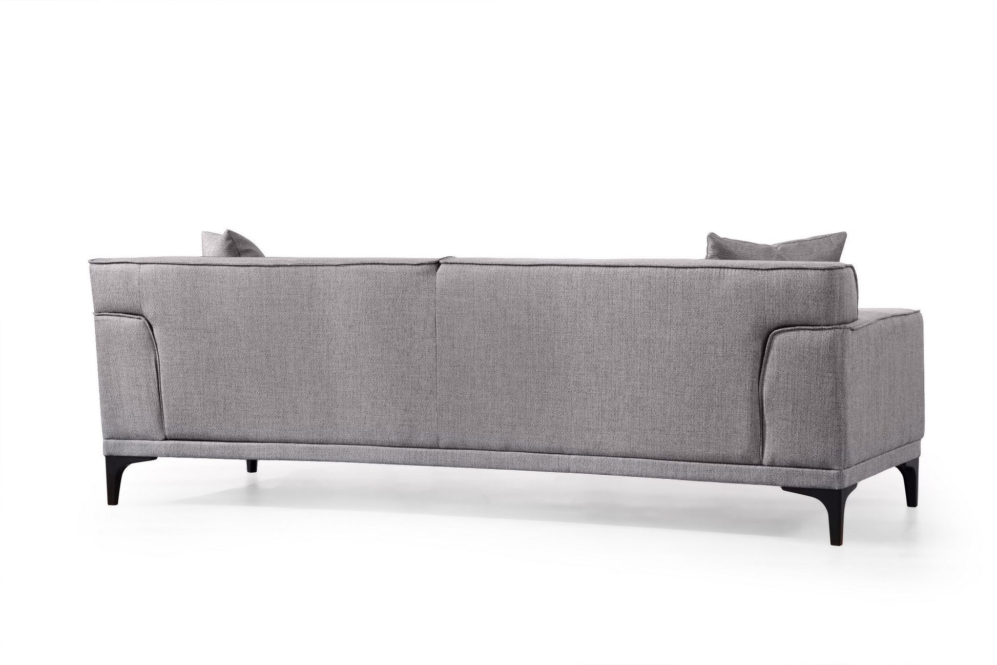 Sofá elegante de 3 lugares, cinza claro, 215 cm | Estrutura em madeira de faia e aglomerado, 100% poliéster, almofadas fixas, 2 travesseiros incluídos | Conforto moderno para sala de estar