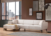 Sofá de canto elegante, branco-sujo, 140 x 270 cm | Estrutura em madeira de faia e aglomerado, 100% poliéster, encosto giratório, inclui 2 almofadas | Design escandinavo moderno