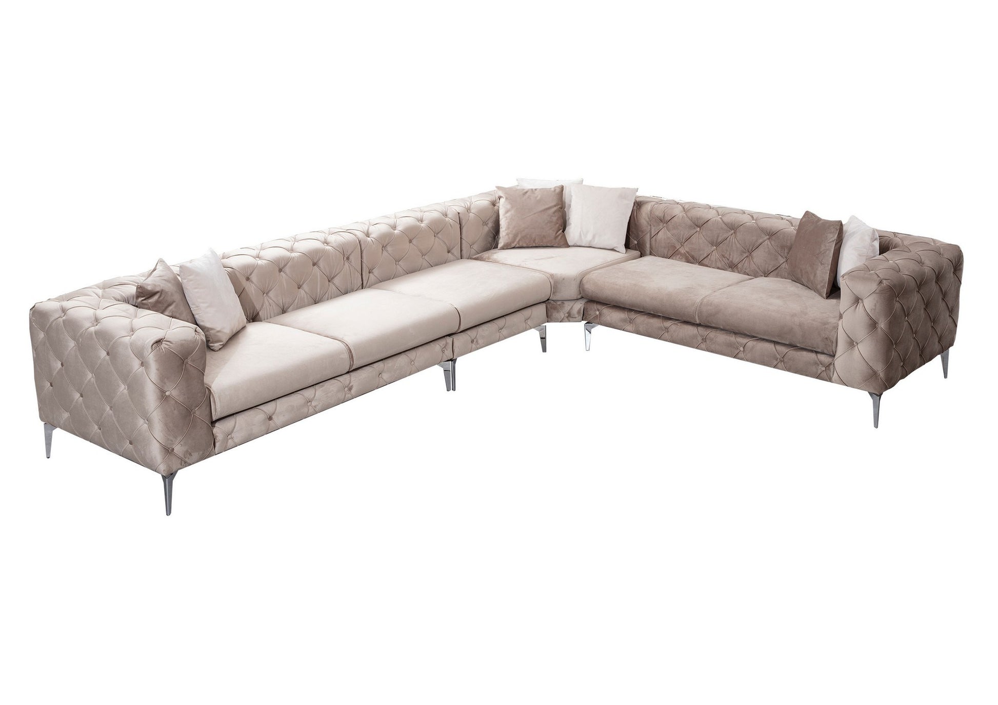 Sofá de canto moderno – 310 cm – bege – madeira de faia e aglomerado