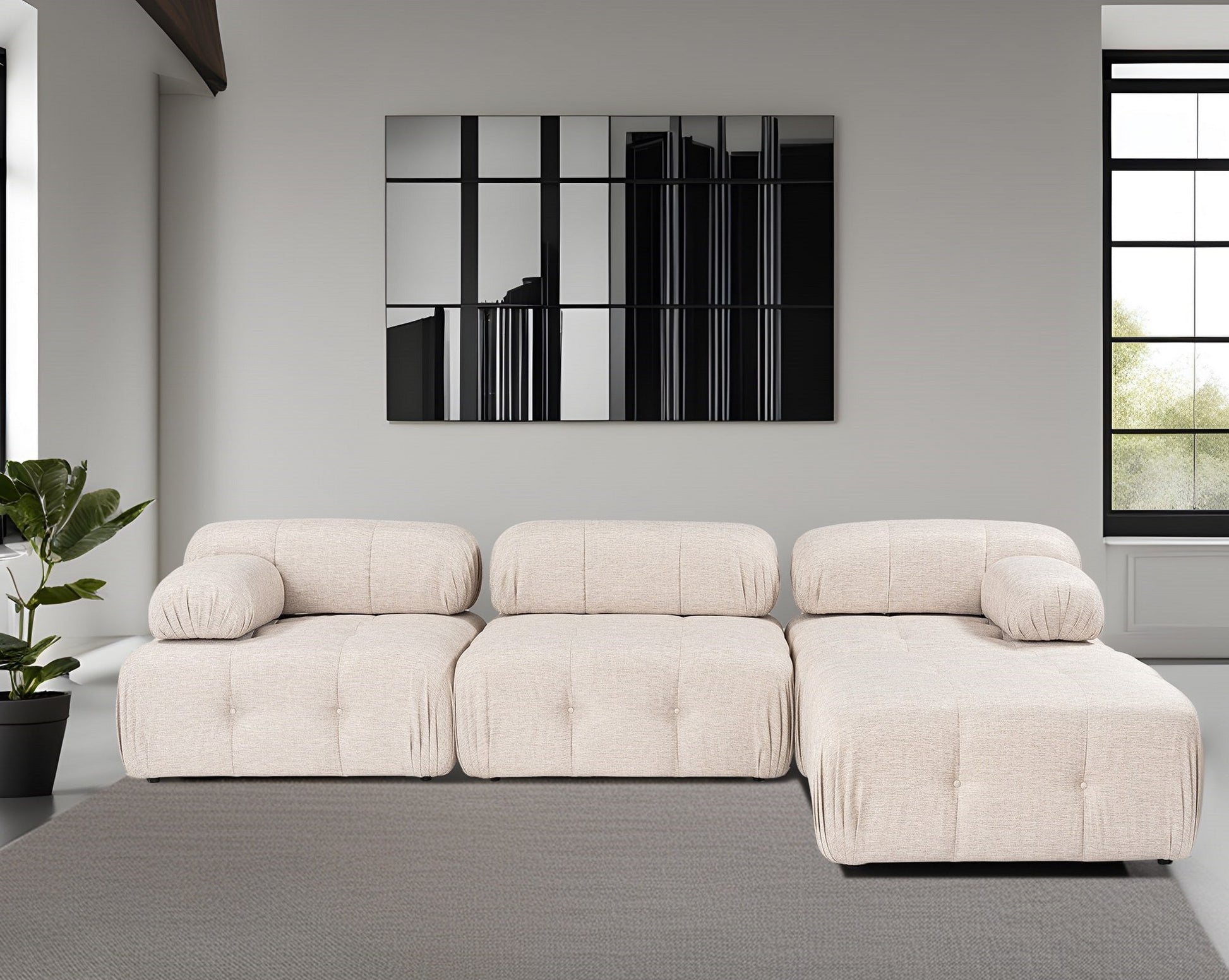 O sistema de sofá com mecanismo de encosto e braço ajustável permite que você personalize sua experiência de assento de acordo com suas preferências. A almofada de assento fixa e a almofada de encosto oferecem estabilidade e suporte, enquanto a espuma 60% picada e 40% espuma de silicone para o encosto garantem uma sensação macia e aconchegante.